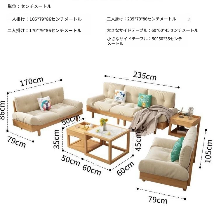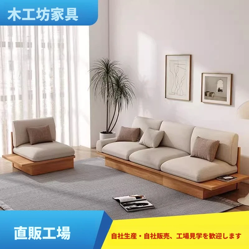 侘寂スタイルの無垢材ソファ - 和風の原木仕上げ、3人掛けモダンミニマリスト&北欧デザイン、収納機能付きソファセットでお部屋をおしゃれに演出!