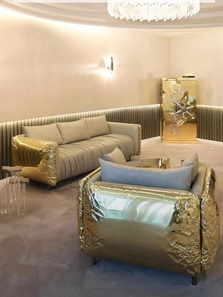 イタリアンラグジュアリー Visionnaire マットレザーソファ ヴィラリビング向け ステンレス製スマイルソファチェアコンビネーションで、上質なくつろぎをお届けします。