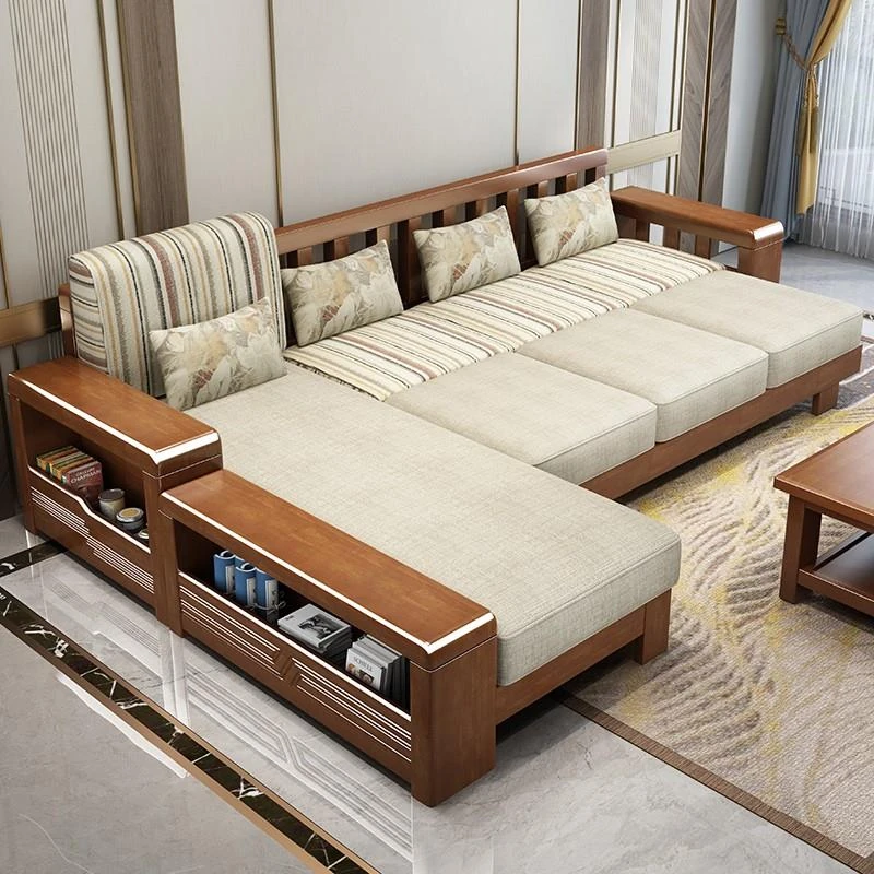 新中式全実木ソファ リビング家具セット モダンミニマリスト 小型住宅向け 天然木製コーナー付きカウチソファで、スタイリッシュな空間を演出!