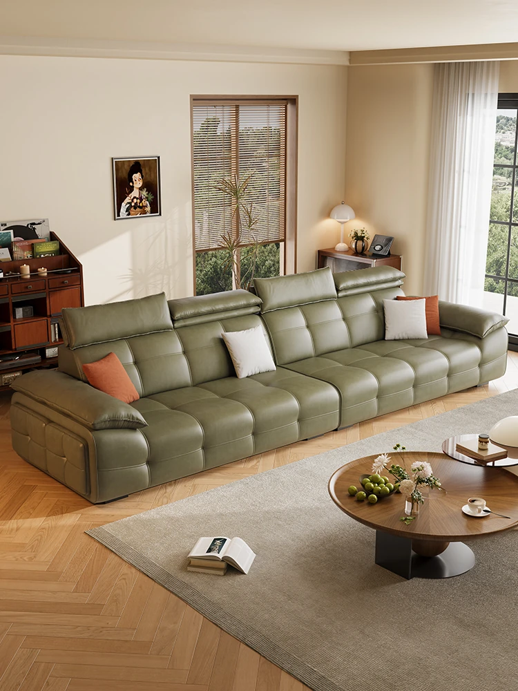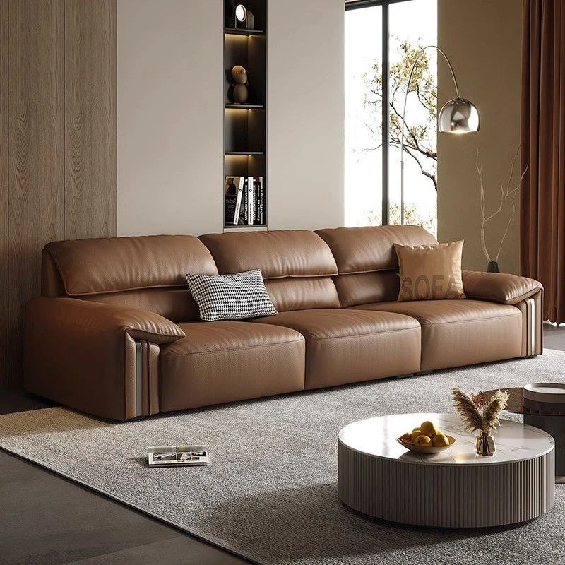 イタリアンミニマリズムの本革ソファ - モダンでシンプルなデザイン、リビングルームにぴったりのラウレンスソファ。中古風のスタイルで、快適さと美しさを兼ね備えた家用ソファです。