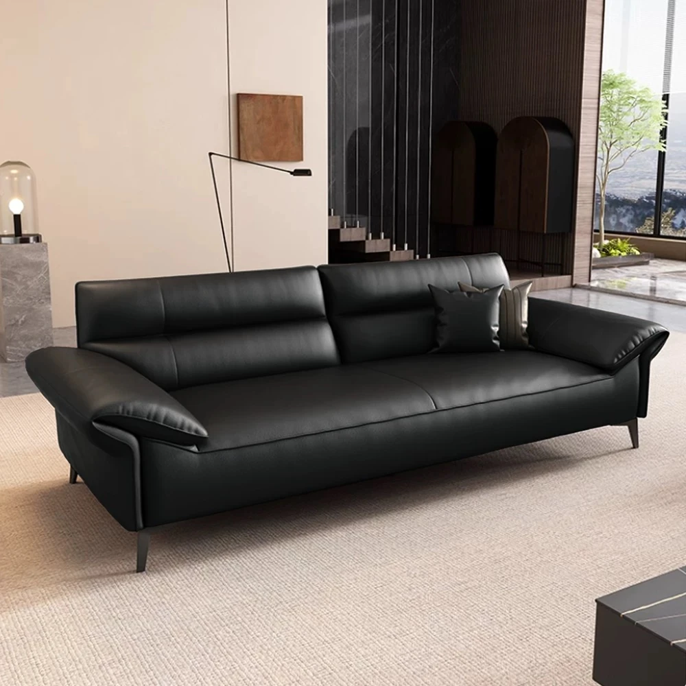 ジャウェイ新作イタリアンミニマリスト黒ソファ、小型リビング向けマシュマロスタイル、ラグジュアリー感漂うモダンレザー製ダブル3人掛けソファ!おしゃれで心地よい空間を演出します。