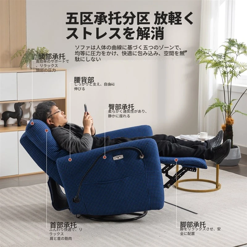 シンプルでモダンな小型ソファチェア|快適な座り心地の宇宙機能付きリクライニングチェア|自宅で映画館のような贅沢体験を!リラックスできるプライベートシアターソファ!