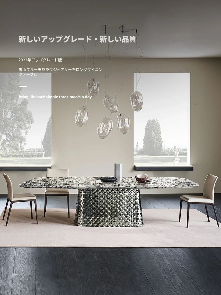 天然大理石使用!イタリアンミニマリズムのラグジュアリー長方形ダイニングテーブル。モダンな高級感が漂う、別荘や広々としたフラットにぴったりな贅沢な石製テーブル!