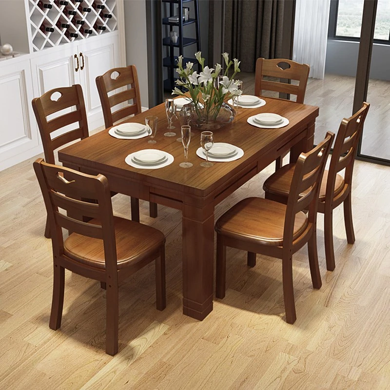 シンプルでモダンな実木ダイニングテーブルセット - 中小型住宅に最適!長方形の西洋スタイルで、家族や友人との食事を楽しく演出します。快適な椅子付きで、居心地の良い食卓を実現!