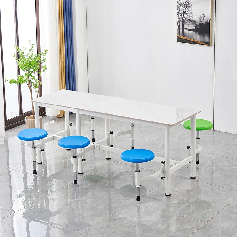 現代的学校食堂用四人用テーブル&チェアセット|会社・工場向けファストフードテーブル|伸縮可能な多機能ダイニングテーブルで、使い勝手抜群!快適な食事空間を提供します。