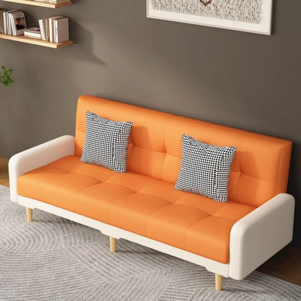 Multi-Functional Leather Sofa Bed - Space-Saving Foldable Couch for Apartments, Ideal for Small Living Rooms, Hair Salons, and Bedrooms, Perfect for Renters and Accommodates Three People