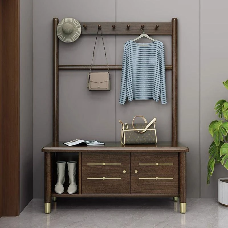Solid Wood Shoe Cabinet and Coat Rack Combo with Bench - Stylish Entryway Shoe Storage Solution with Double Doors for Home Use