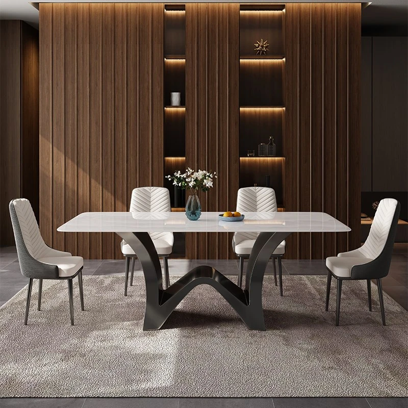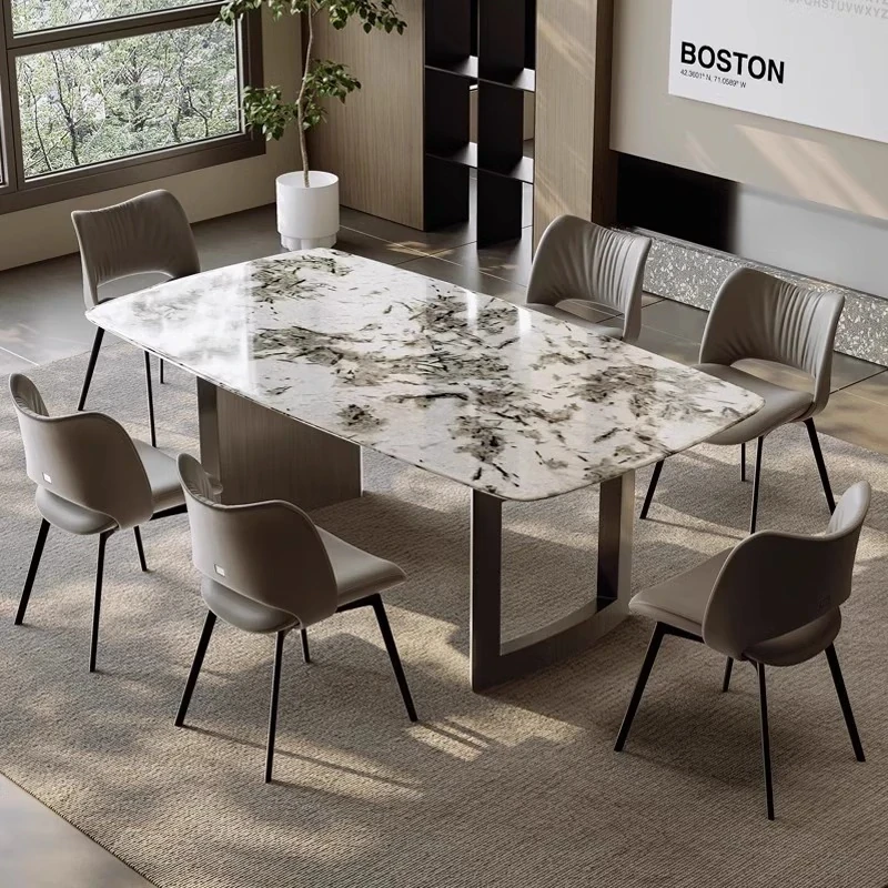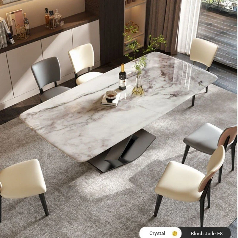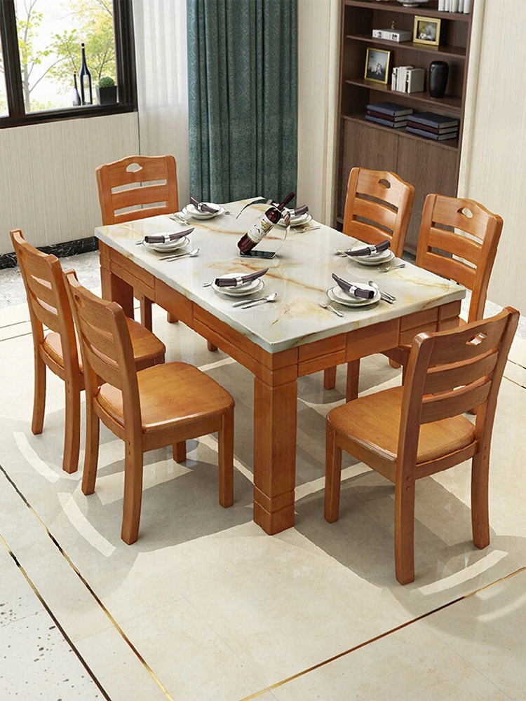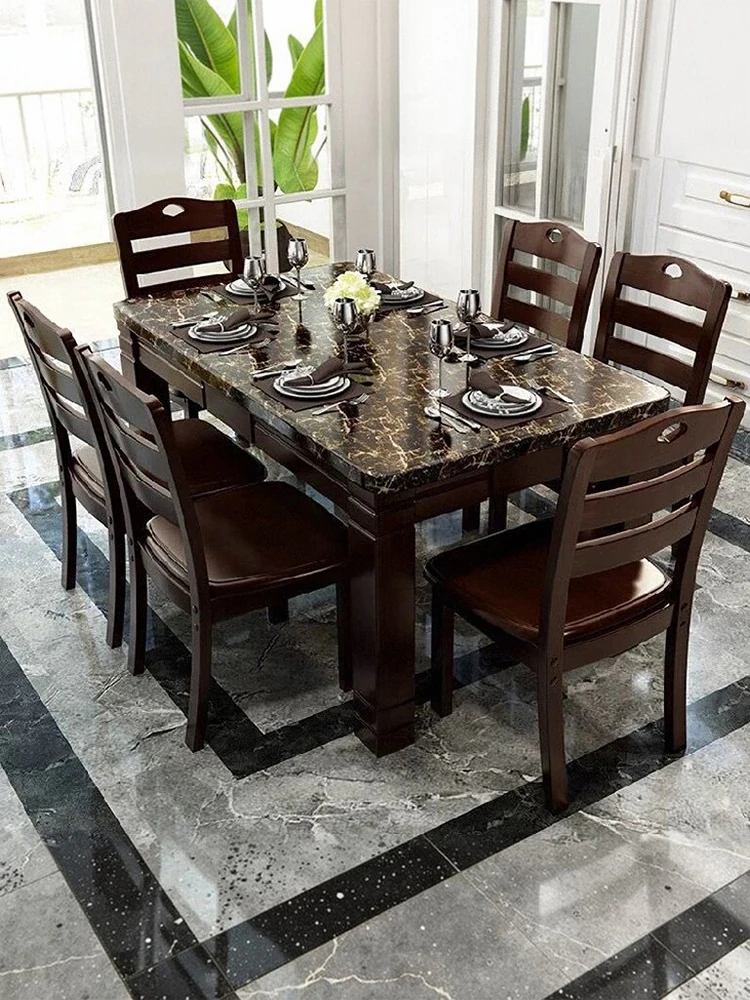 Elegant Rectangular Marble Dining Table Set for 6-8 People - Stylish Solid Wood Dining Furniture for Home Use
