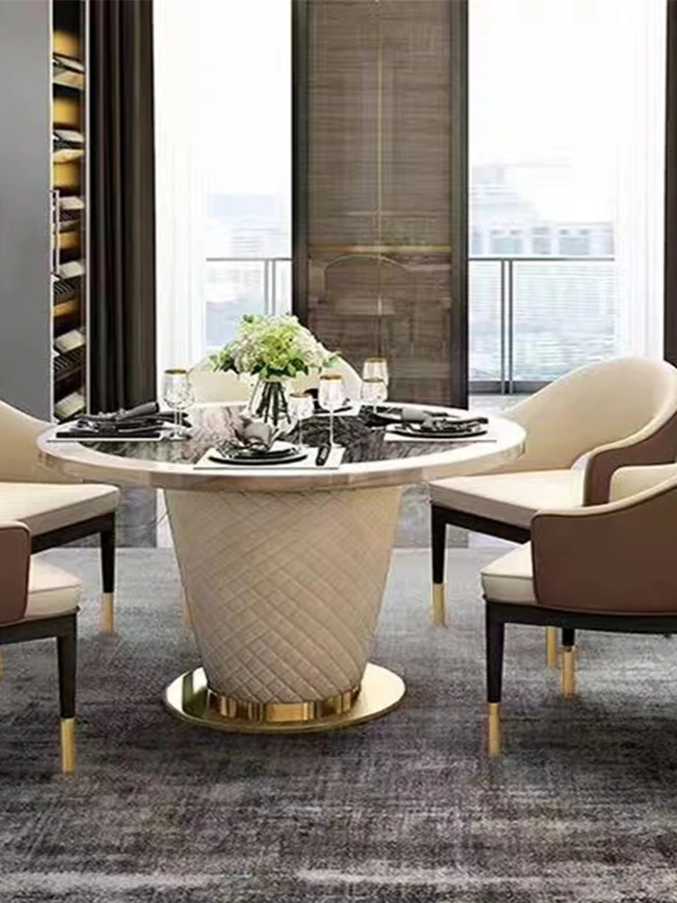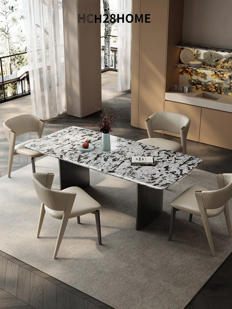 2025 Italian Minimalist Natural Marble Dining Table and Chair Set - Modern Simple Luxury Upholstered Leather Dining Furniture for Home