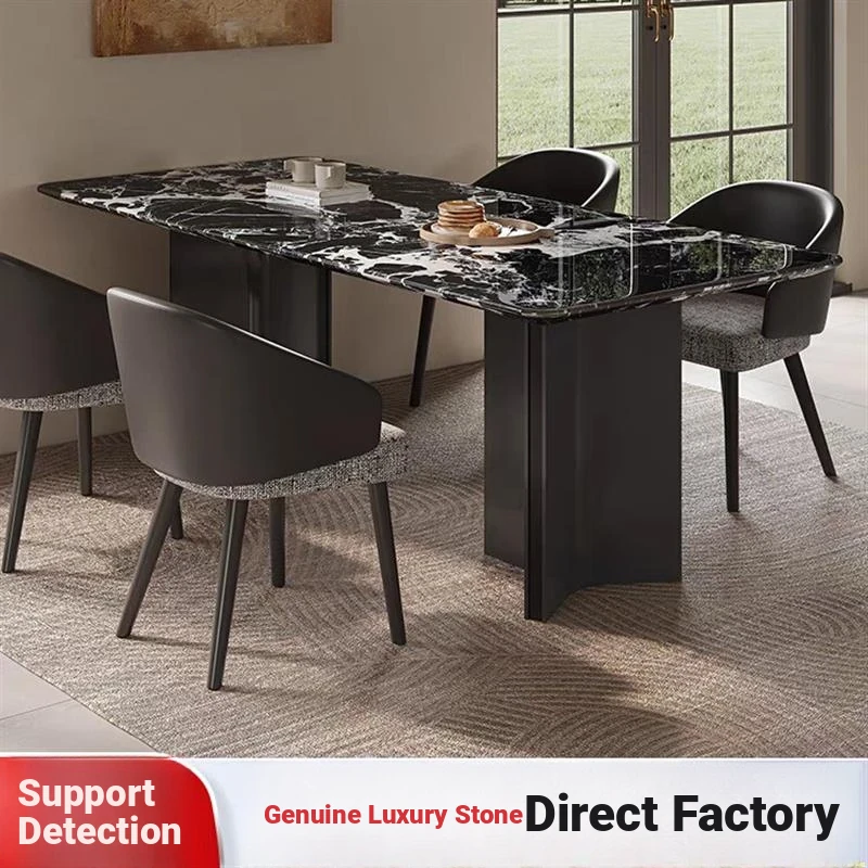 Premium Imported Brazilian Natural Marble Luxury Dining Table - Modern Italian Minimalist Black Rectangular Design for Home Use
