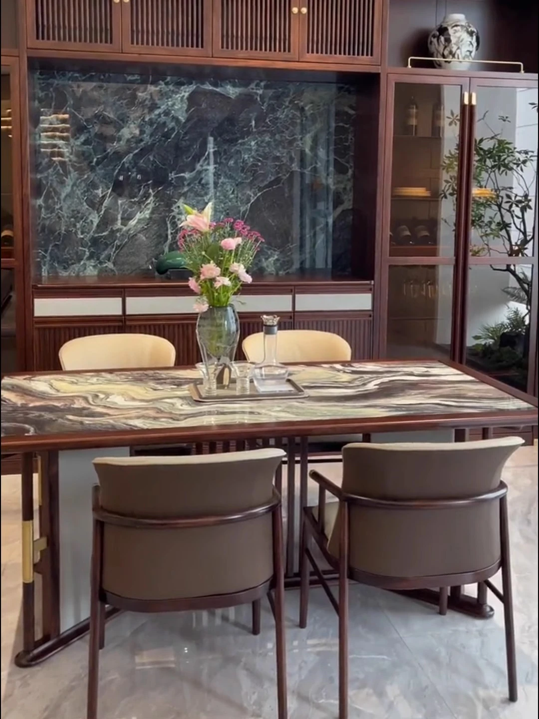 Imported Natural Marble Venice Brown Luxury Dining Table Set with Oreo Gray Platinum Diamond - Premium Home Dining Experience