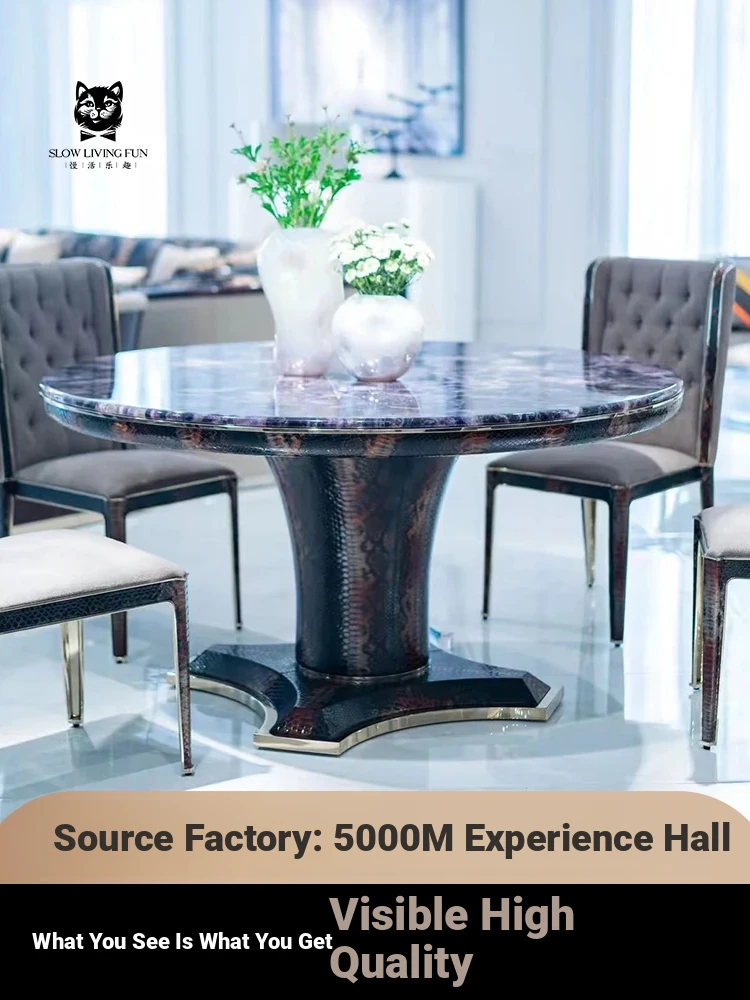 Italian Luxury Amethyst Dining Table with Snake Skin Texture - Modern Round Dining Table Set for Villas and Upscale Homes