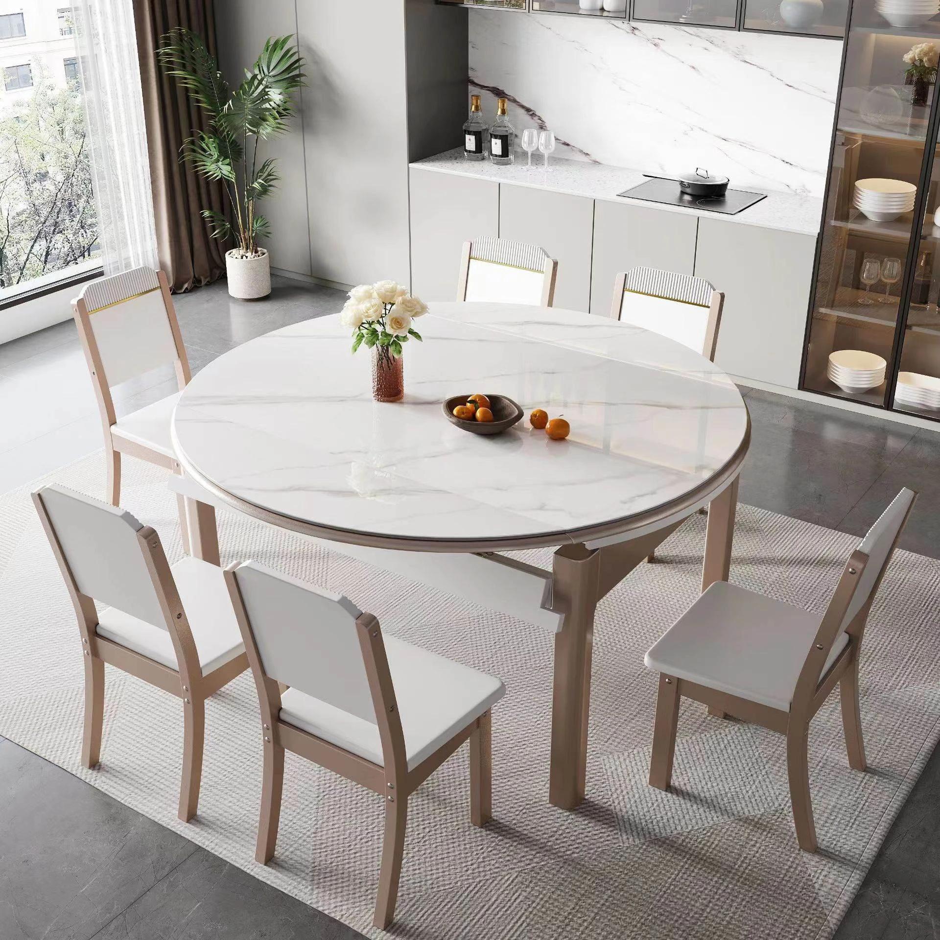 【Discounted Price】Elegant American-Style Marble and Solid Wood Dining Table Set with French Cream Furniture - Modern Minimalist Design
