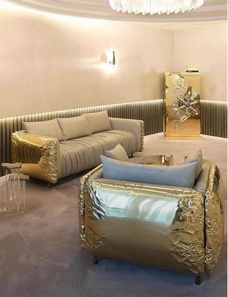 2024 New Luxury Designer Sofa - Imported Velvet & Stainless Steel Reception Area Couch for Living Room, Exuding Sophistication and Comfort