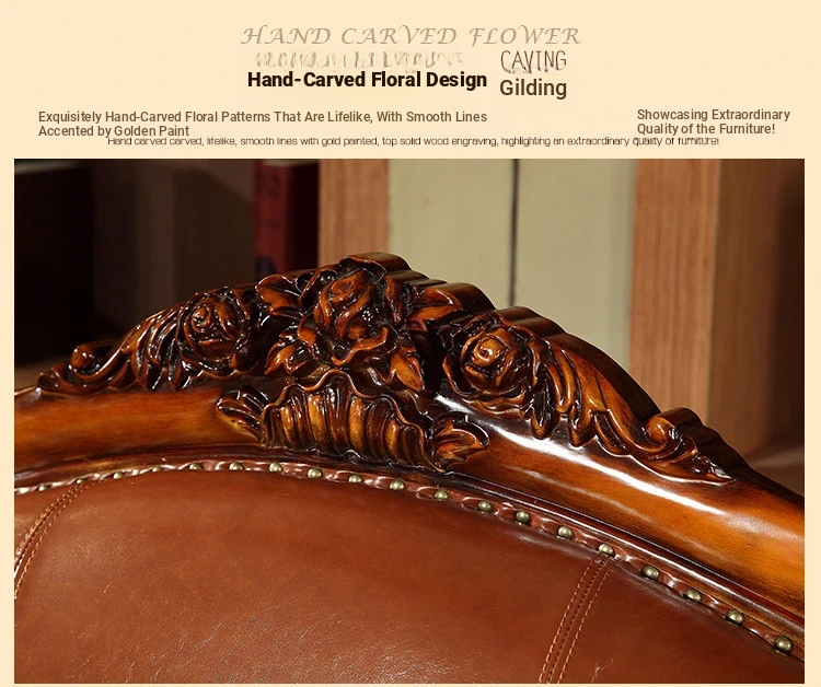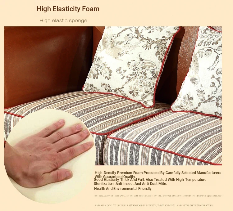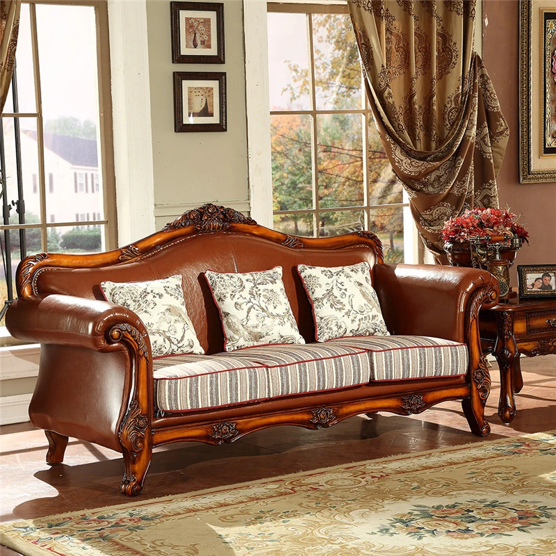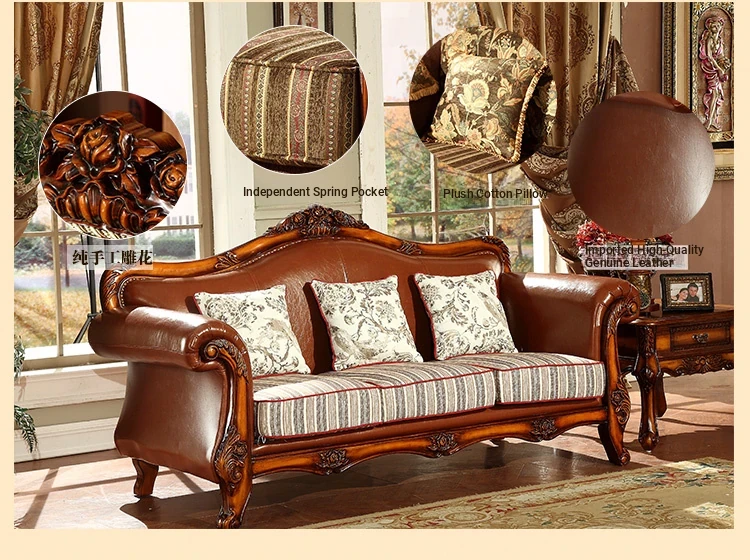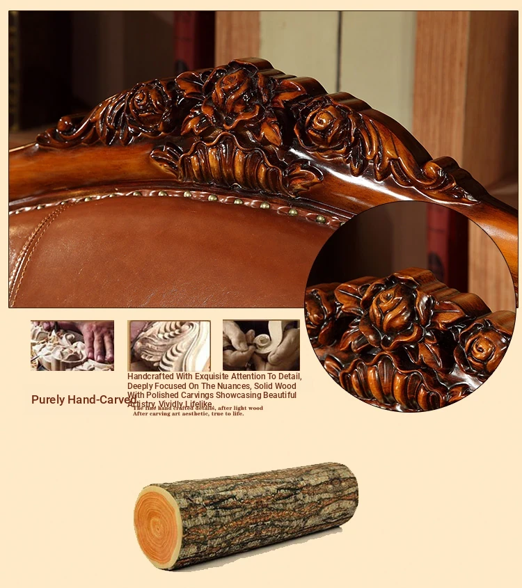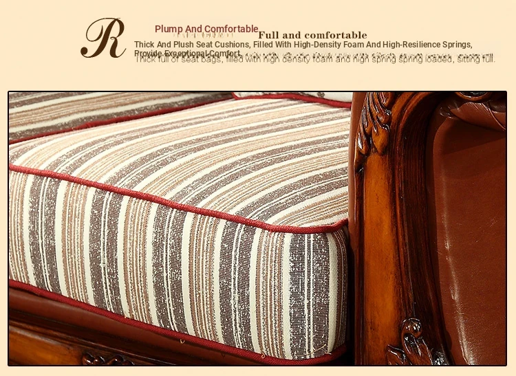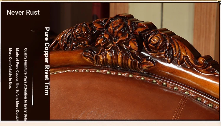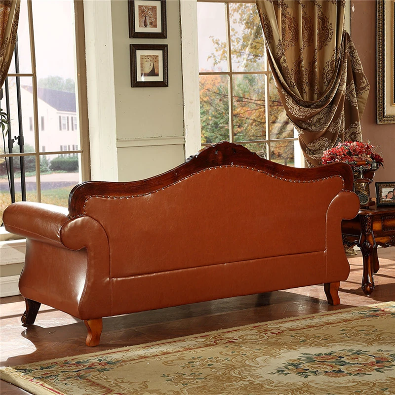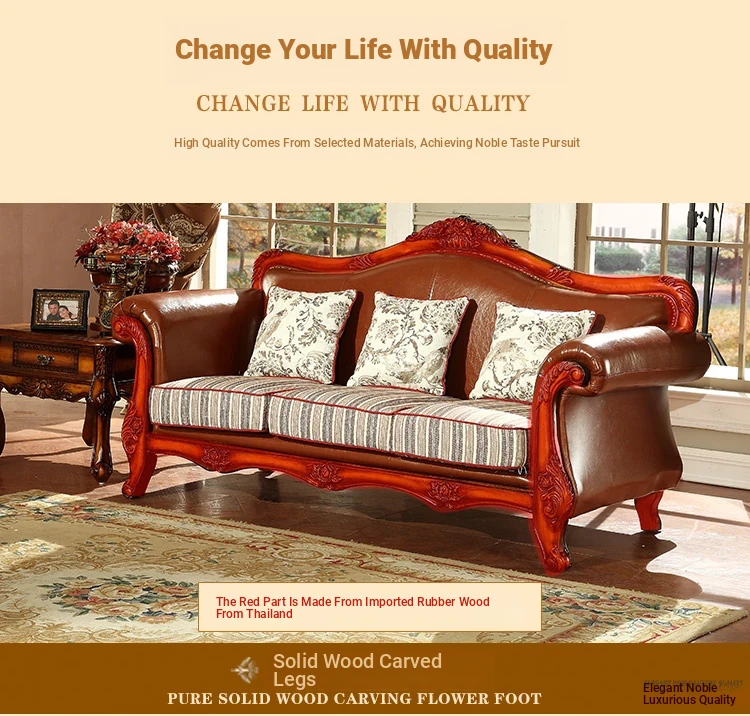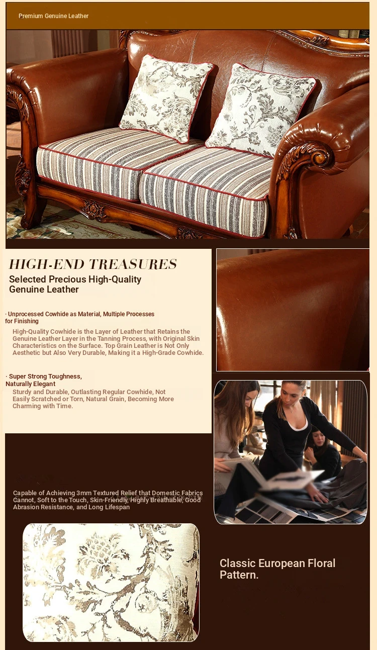 American Country Style Genuine Leather Sofa - Solid Wood Small Space Vintage Office and Living Room Set, New 123 Combination
