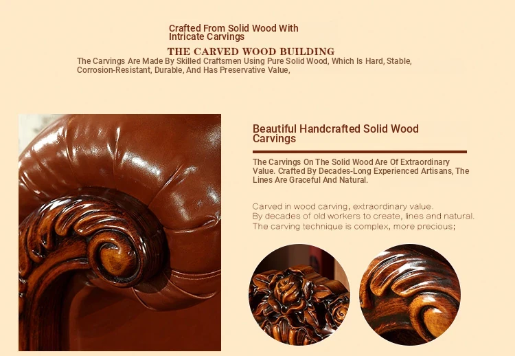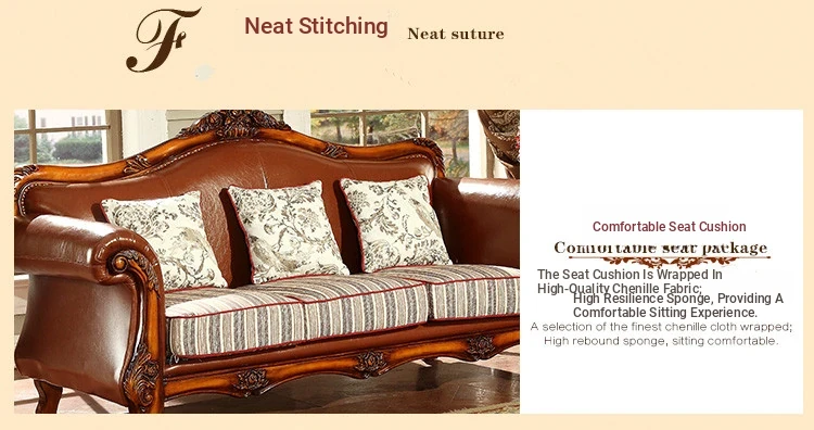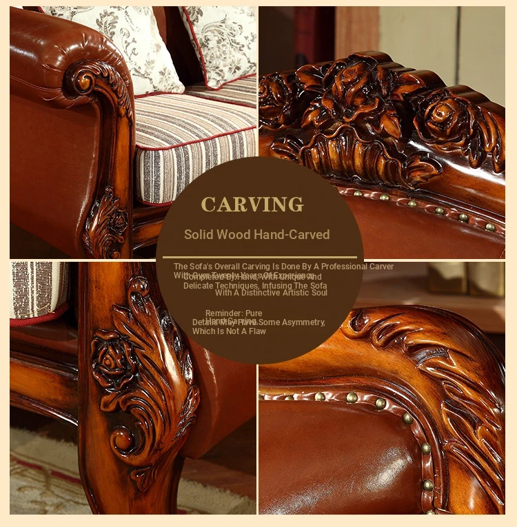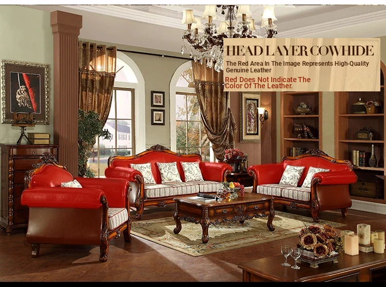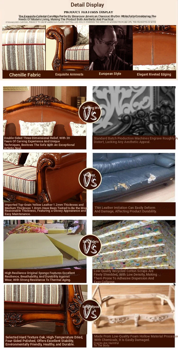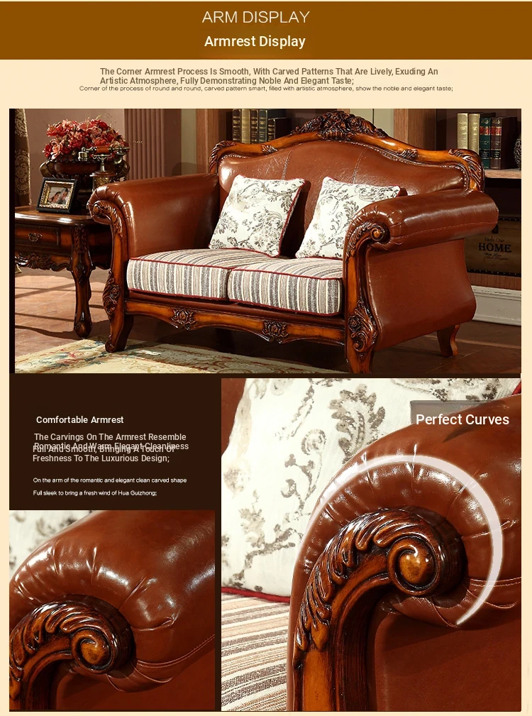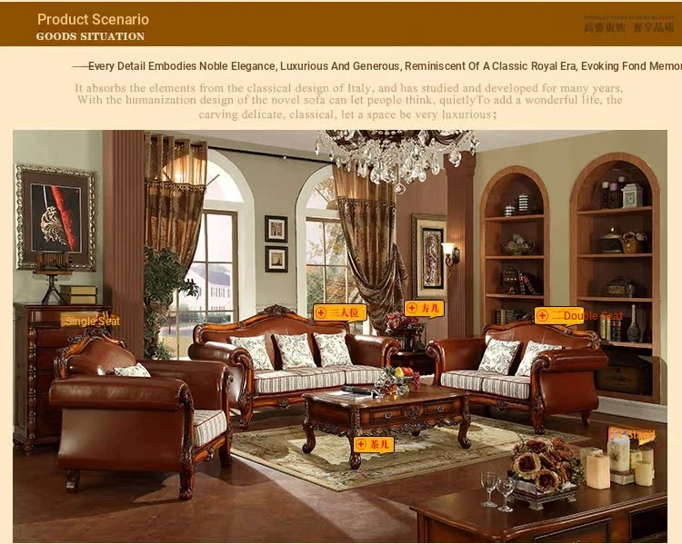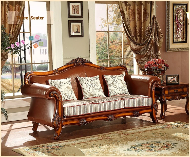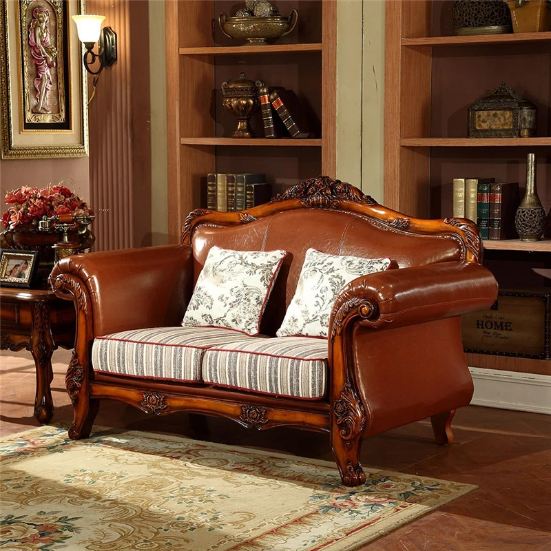 American Country Style Genuine Leather Sofa - Solid Wood Small Space Vintage Office and Living Room Set, New 123 Combination