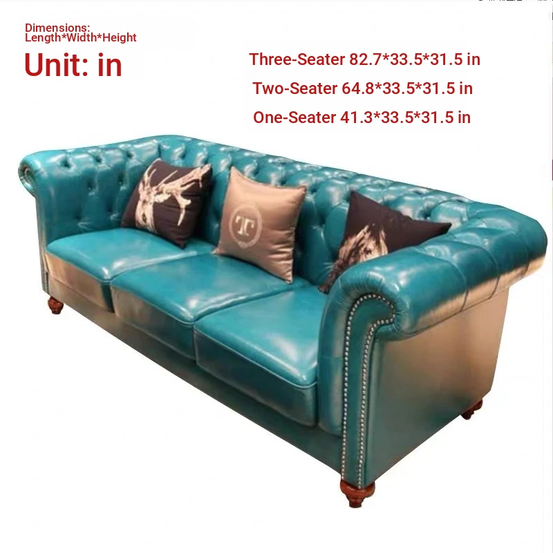 American Style Three-Seat Leather Sofa - Minimalist Design for Small Living Rooms, Perfect for Hotels and Lounges, Ideal for European-Style Study Rooms