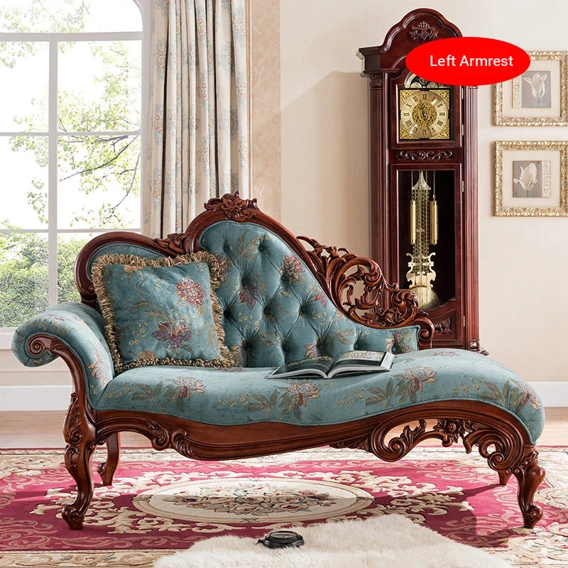 American-Style Solid Wood Chaise Lounge - Versatile Recliner for Living Room, Single Sofa Chair for Bedroom, Elegant Daybed for Small Spaces, Perfect for Relaxation and Comfort.