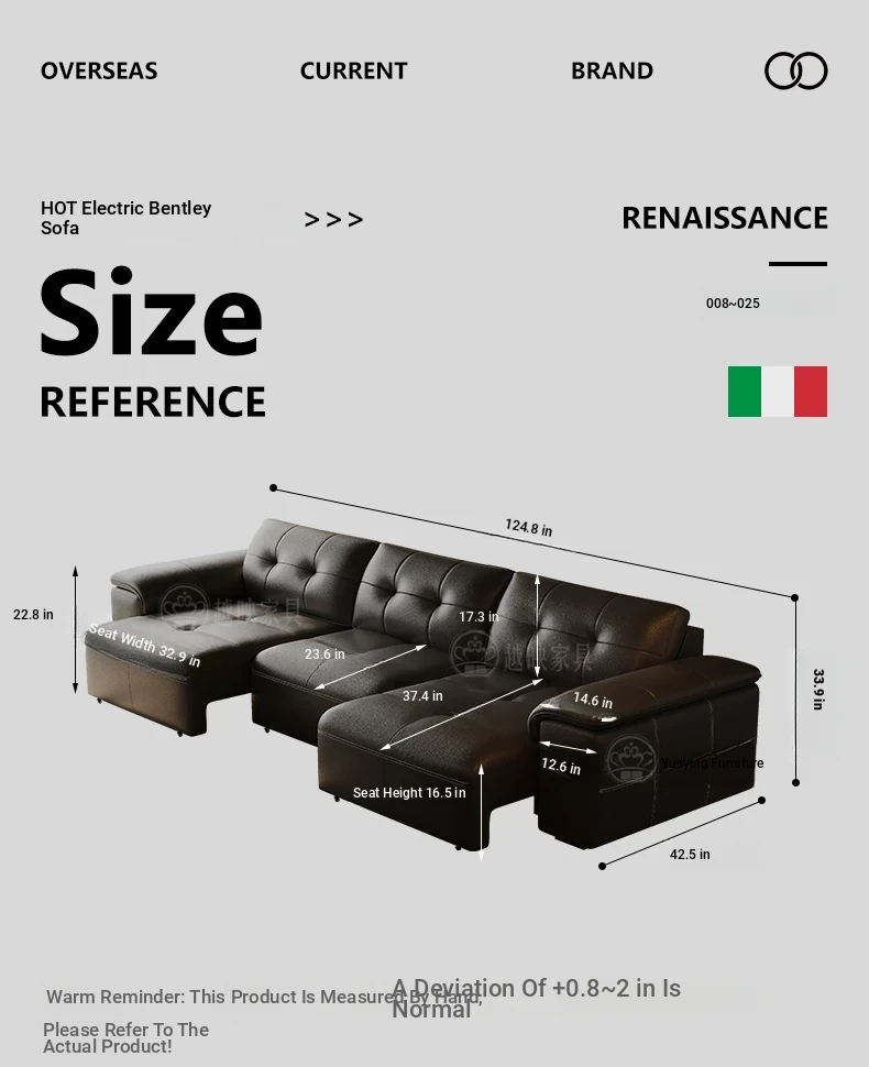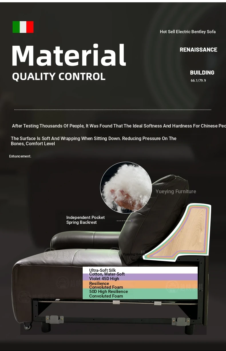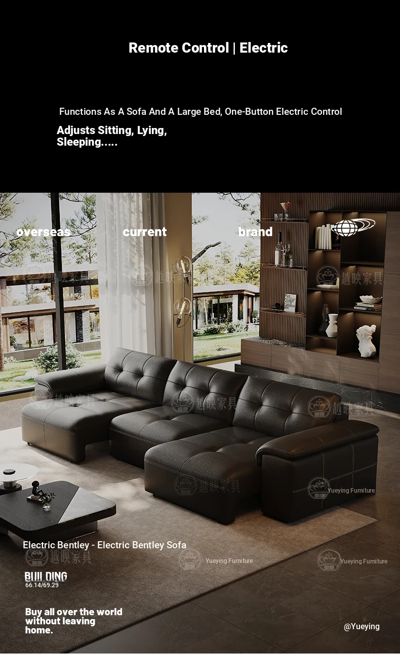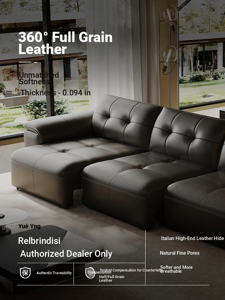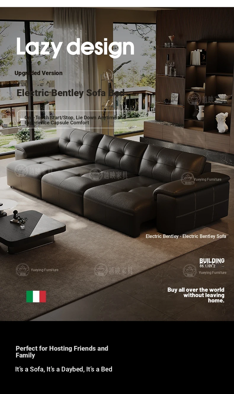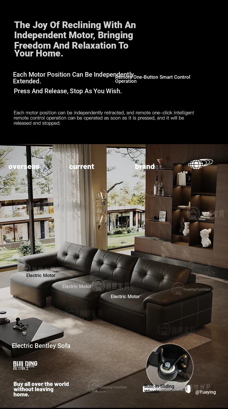 Bentley Zero-Wall Electric Sofa - Italian Genuine Leather, Luxury Living Room Furniture with Top-Grade Cowhide Upholstery
