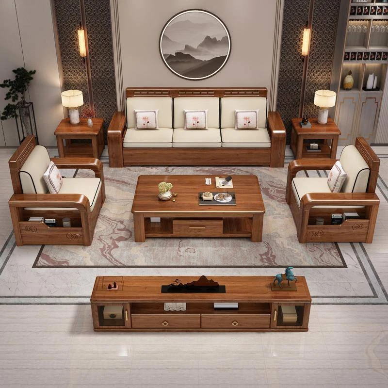 Chinese Peach Wood Solid Wood Living Room Sofa Set for Small Spaces - Dual-Use Winter HK50 Hu Xia High-Box Storage Sofa