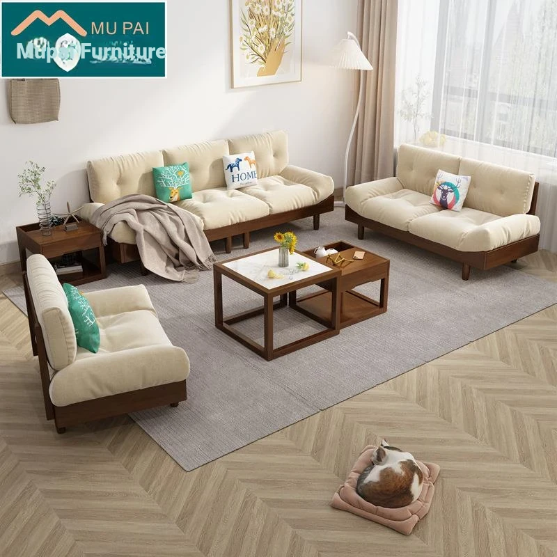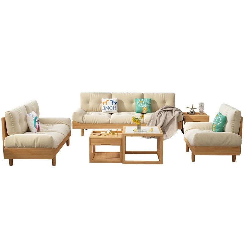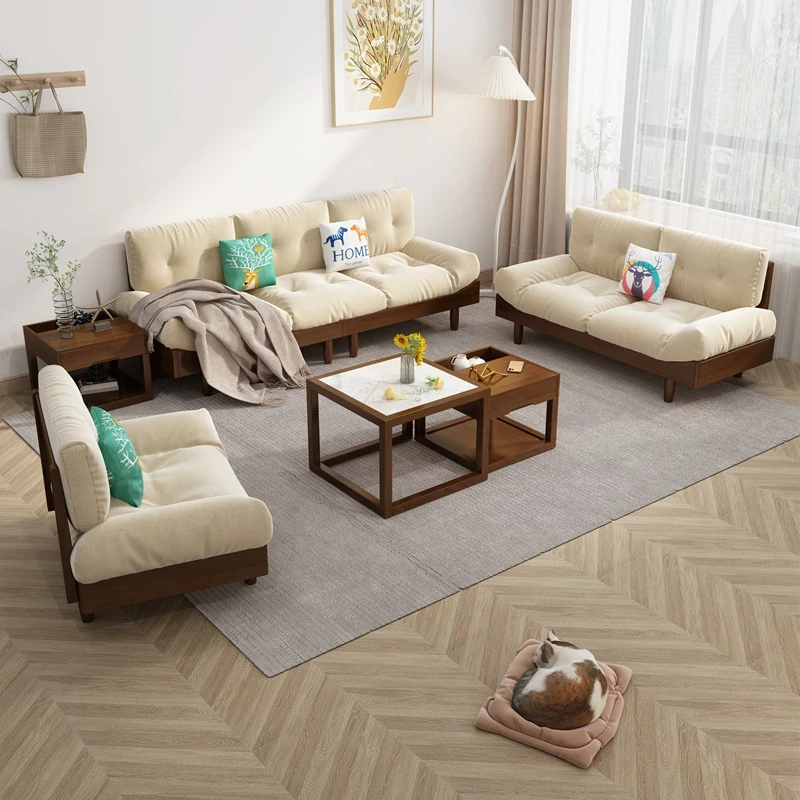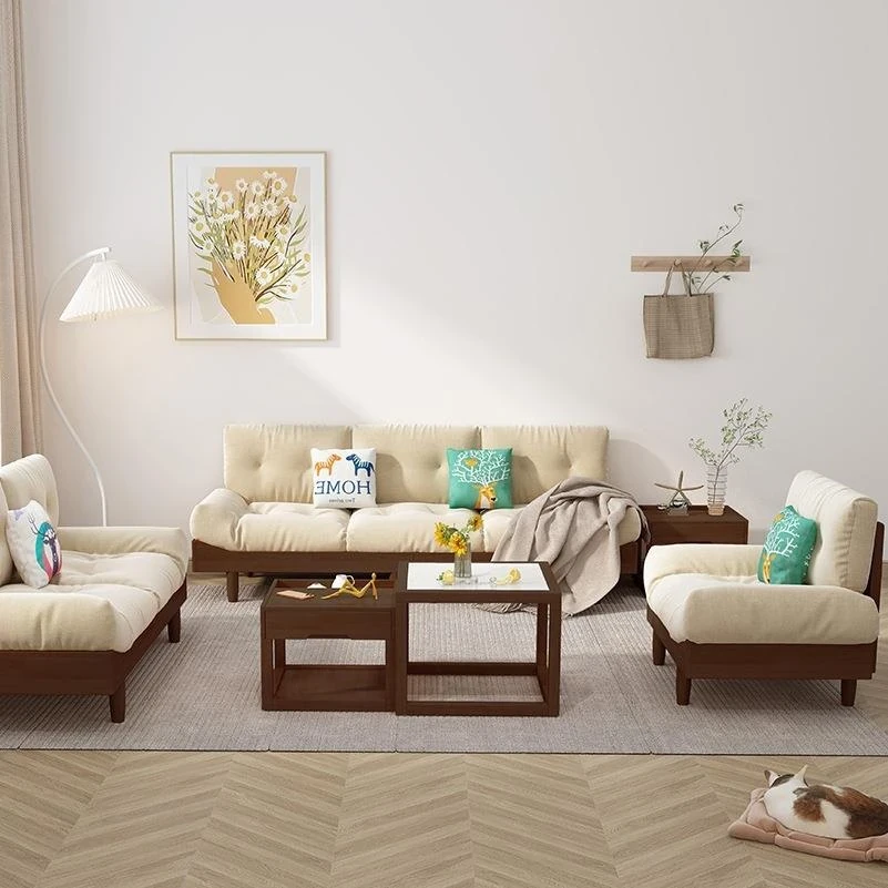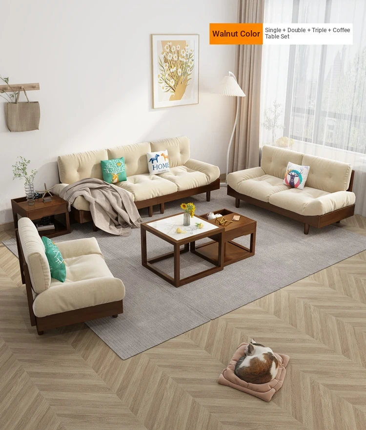 Cloud Sofa - Solid Wood & Fabric, Italian Minimalist Design for Small Spaces, Modern Creamy Style Double Seat Living Room Furniture