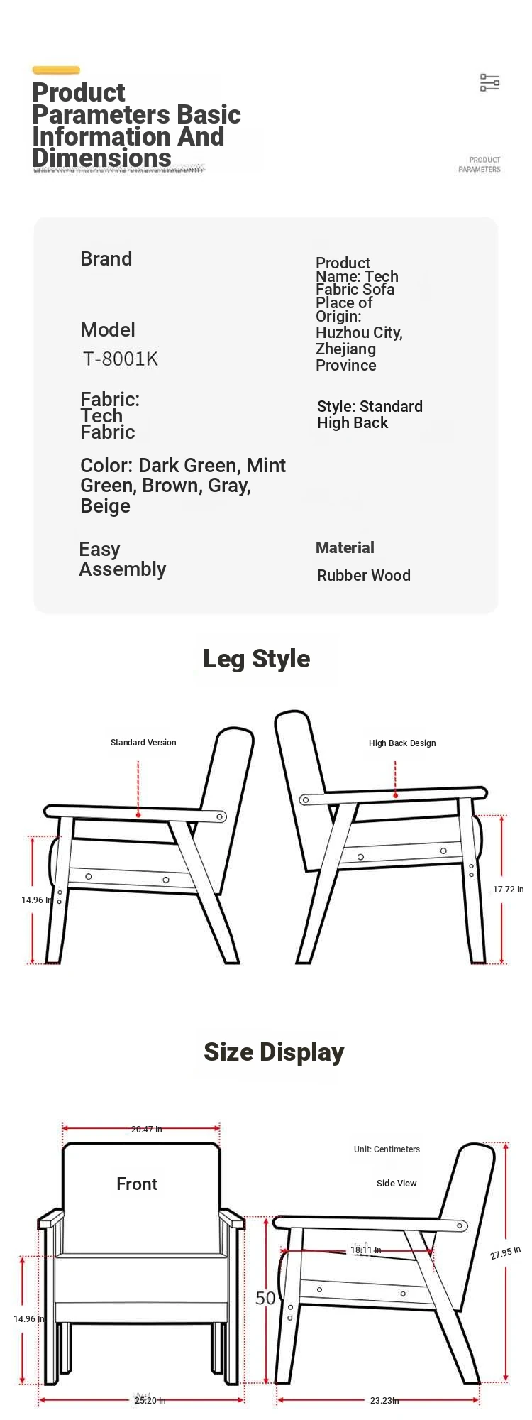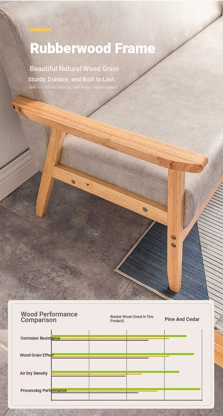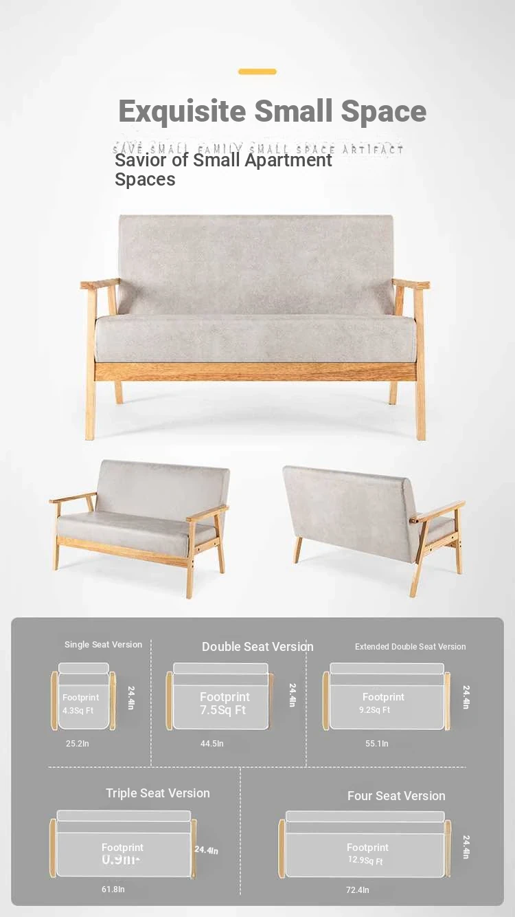 Compact Modern Sofa for Small Spaces - Stylish Minimalist Fabric Sofa for Living Room, Available in Double and Single Options, Featuring Solid Wood Frame and Innovative Japanese Tech Fabric