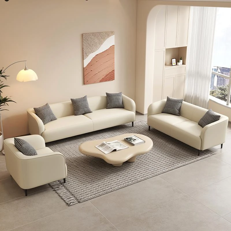 Creamy Minimalist Small Sofa for Girls' Bedroom - Modern Design for Cozy Living Room or Reception Area in Compact Spaces