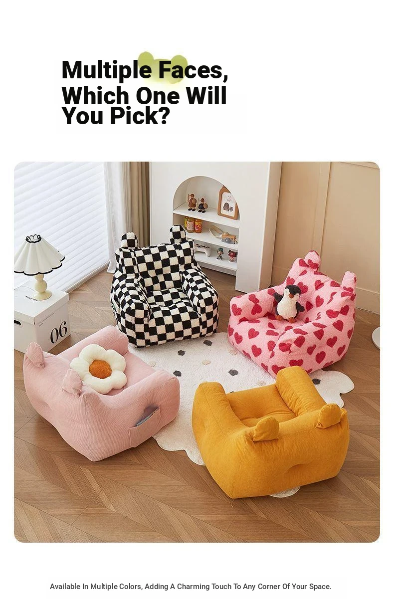 Cute Princess Children's Sofa - Adorable Single Bean Bag Chair for Kids' Bedroom, Perfect for Reading Nook and Baby's Backrest Seating.