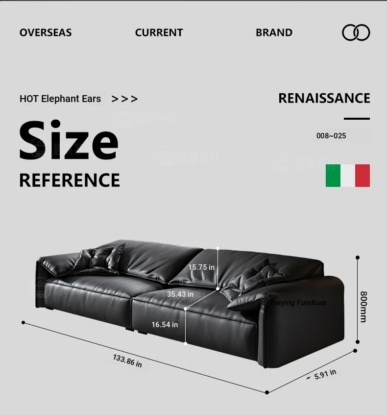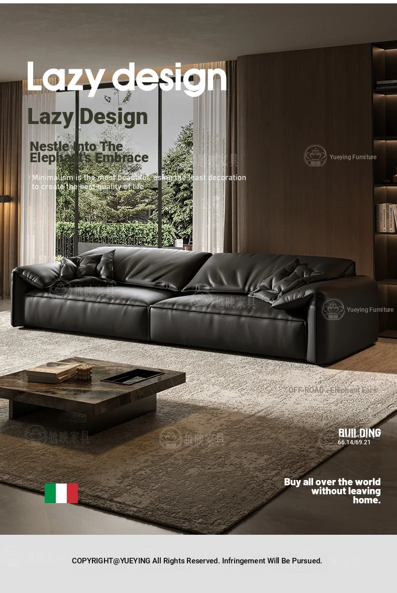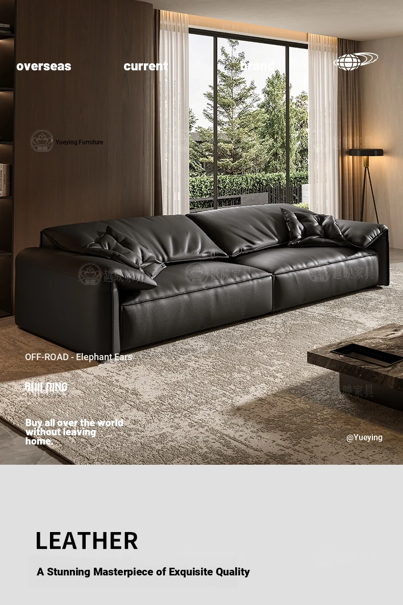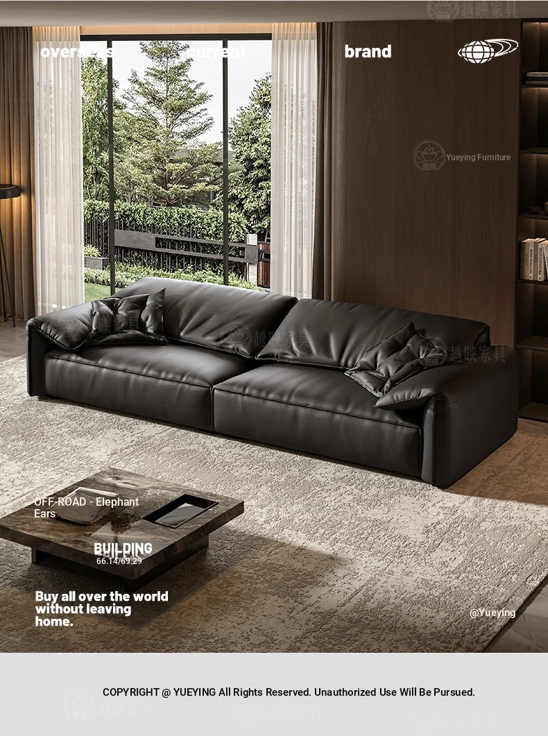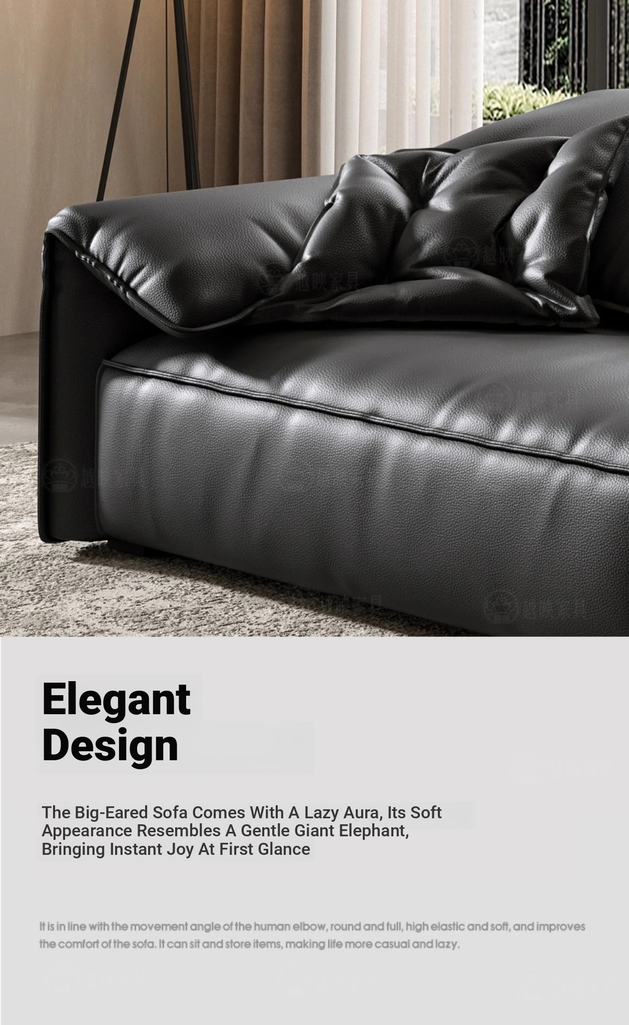 Elegance Italian Minimalist Elephant Ear Sofa - Premium Full Grain Leather for Small Living Rooms, High-End Design with Straight Lines