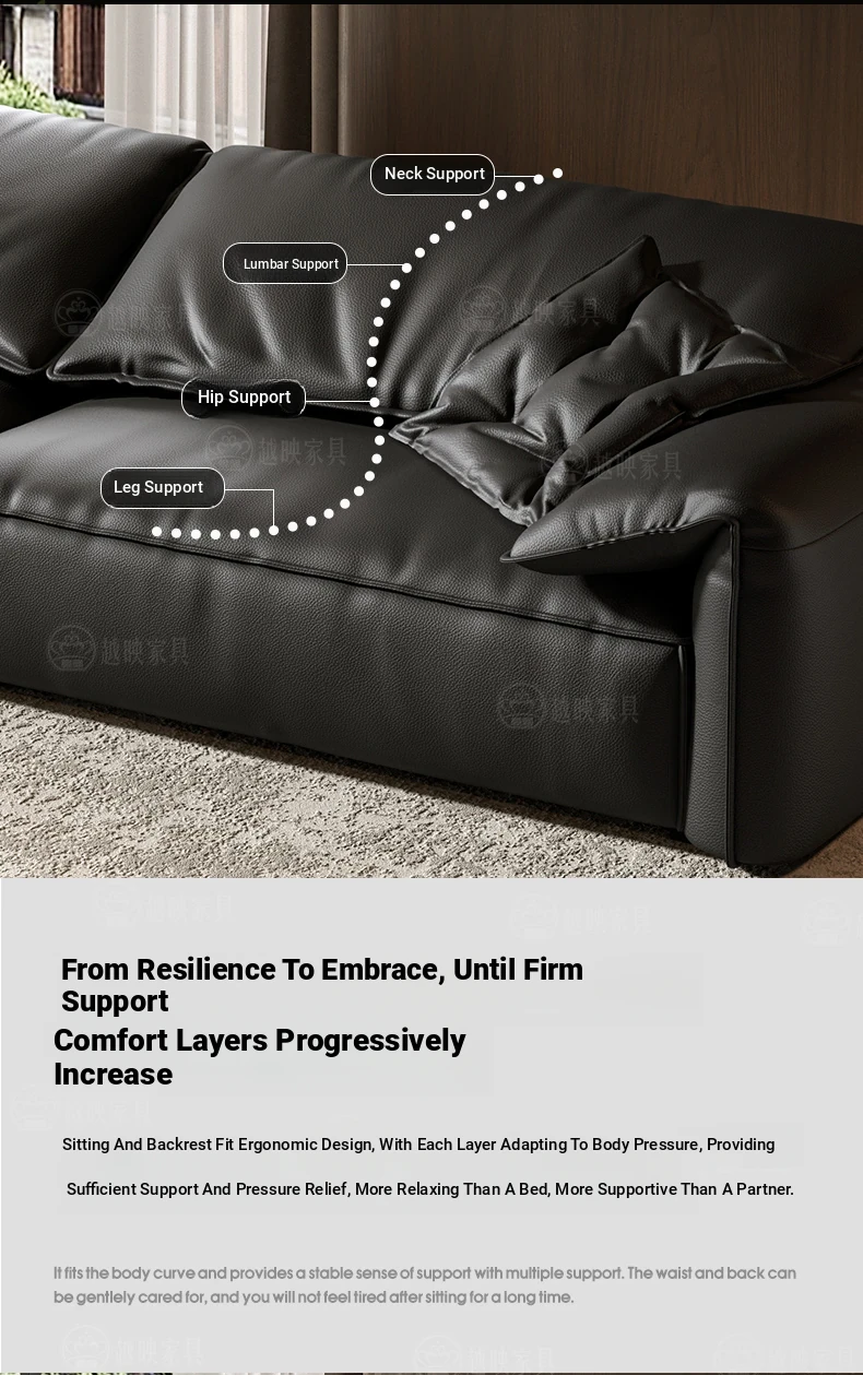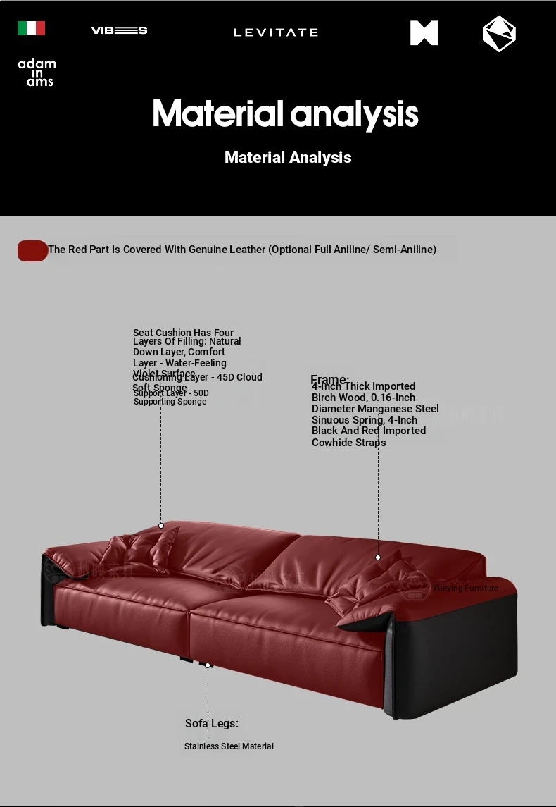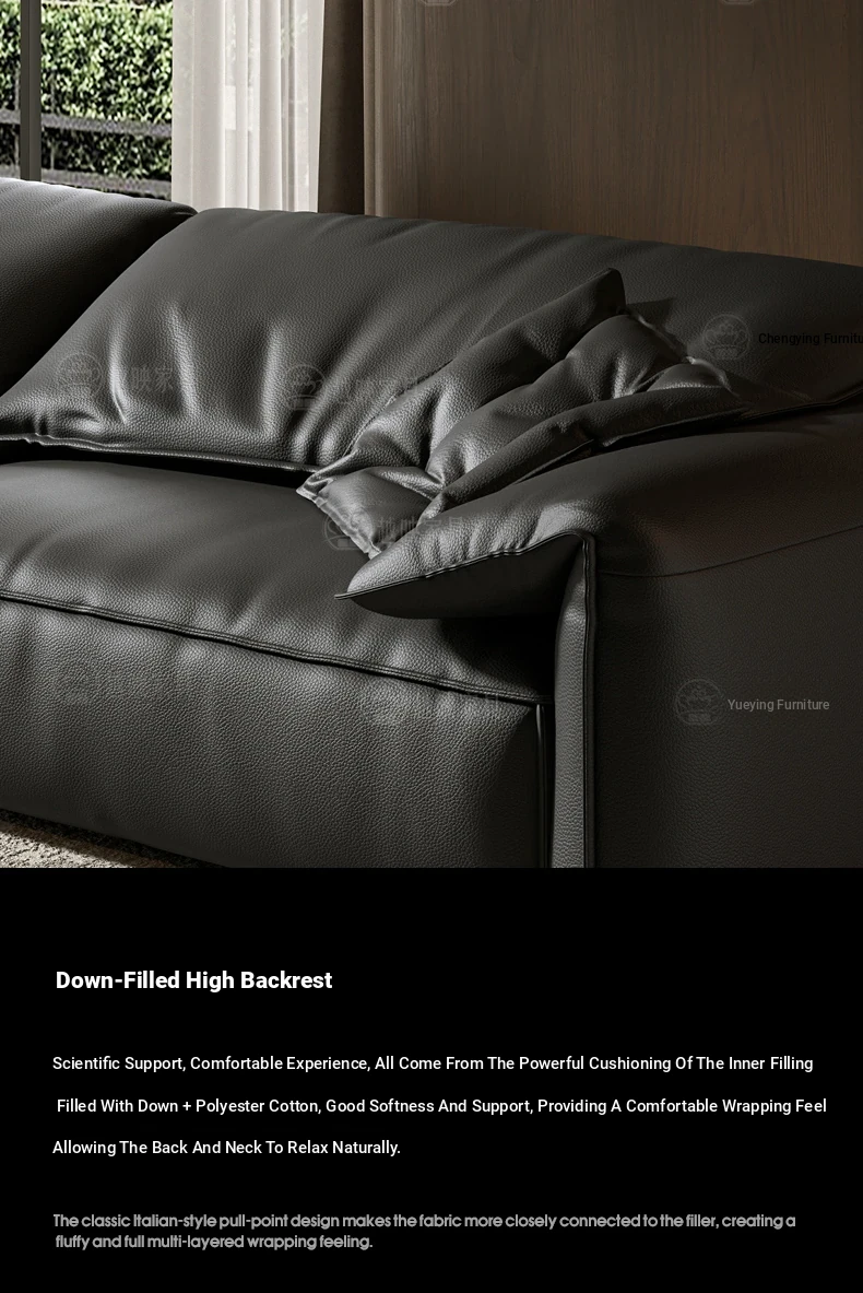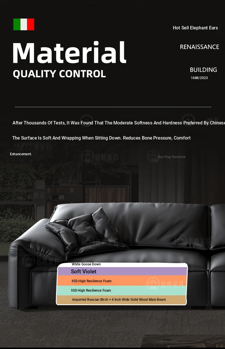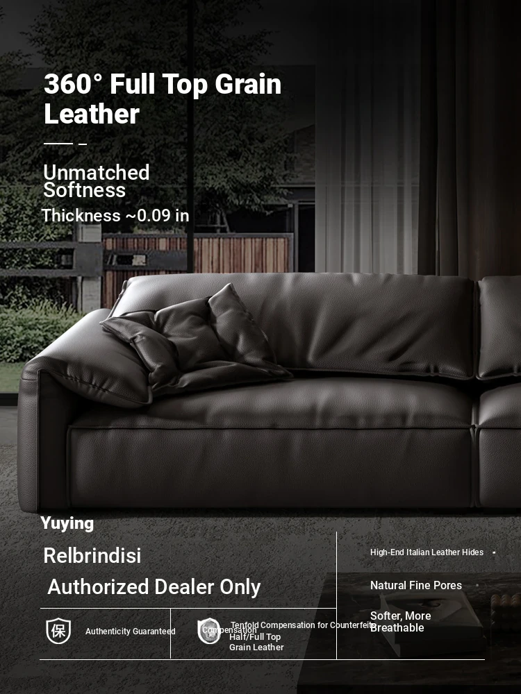 Elegance Italian Minimalist Elephant Ear Sofa - Premium Full Grain Leather for Small Living Rooms, High-End Design with Straight Lines