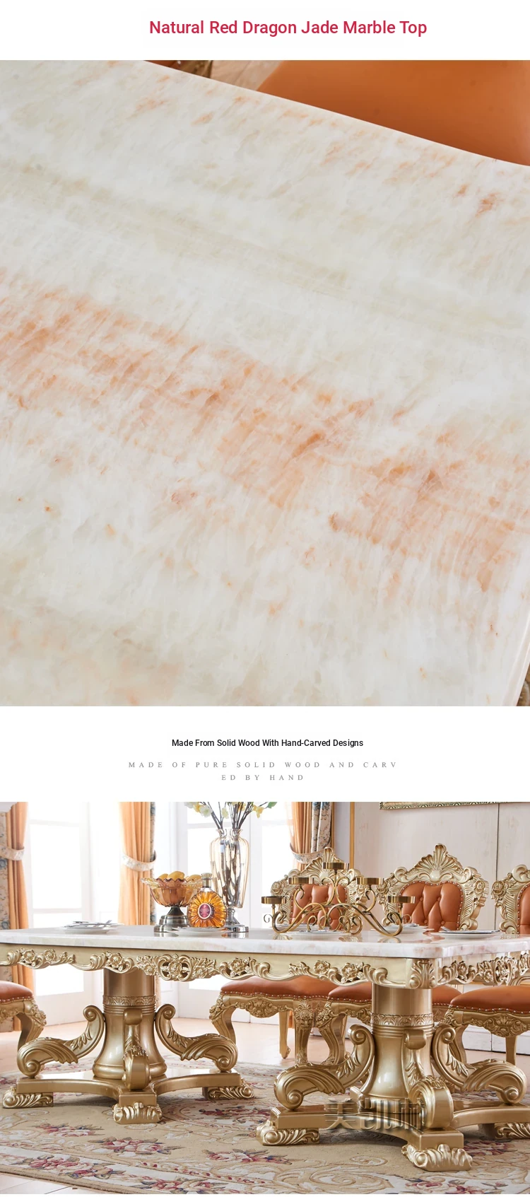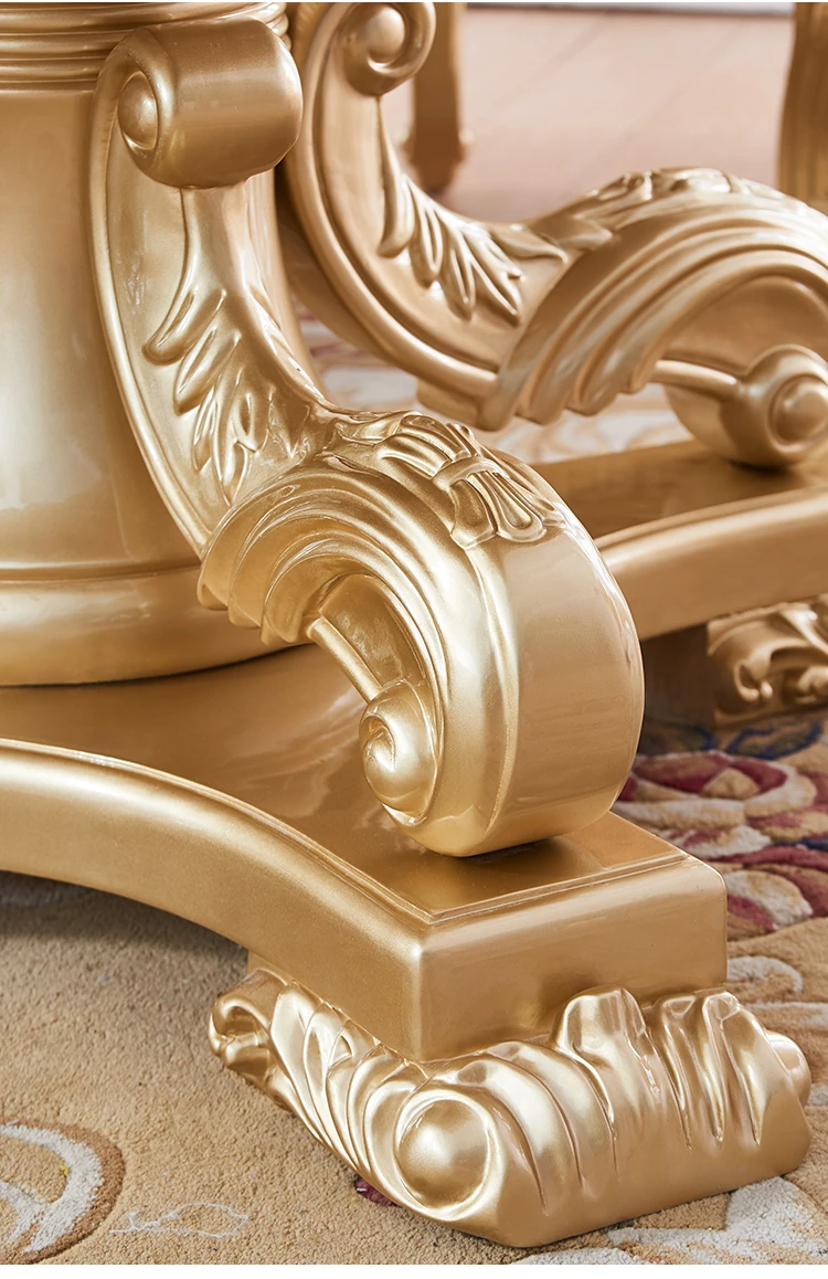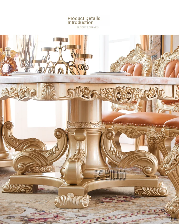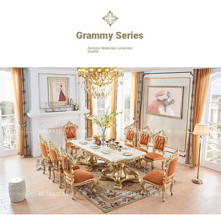 Elegant European Luxury Champagne Gold Rectangular Dining Table Set - Exquisite Natural Marble Table and Chairs for Upscale Villas and Dining Rooms