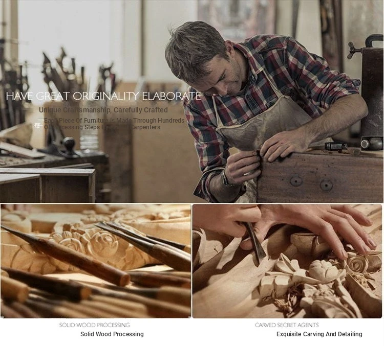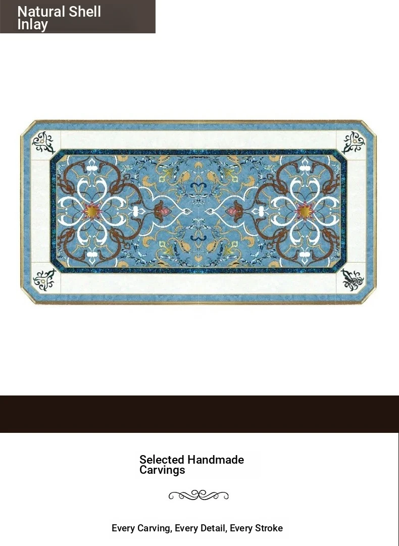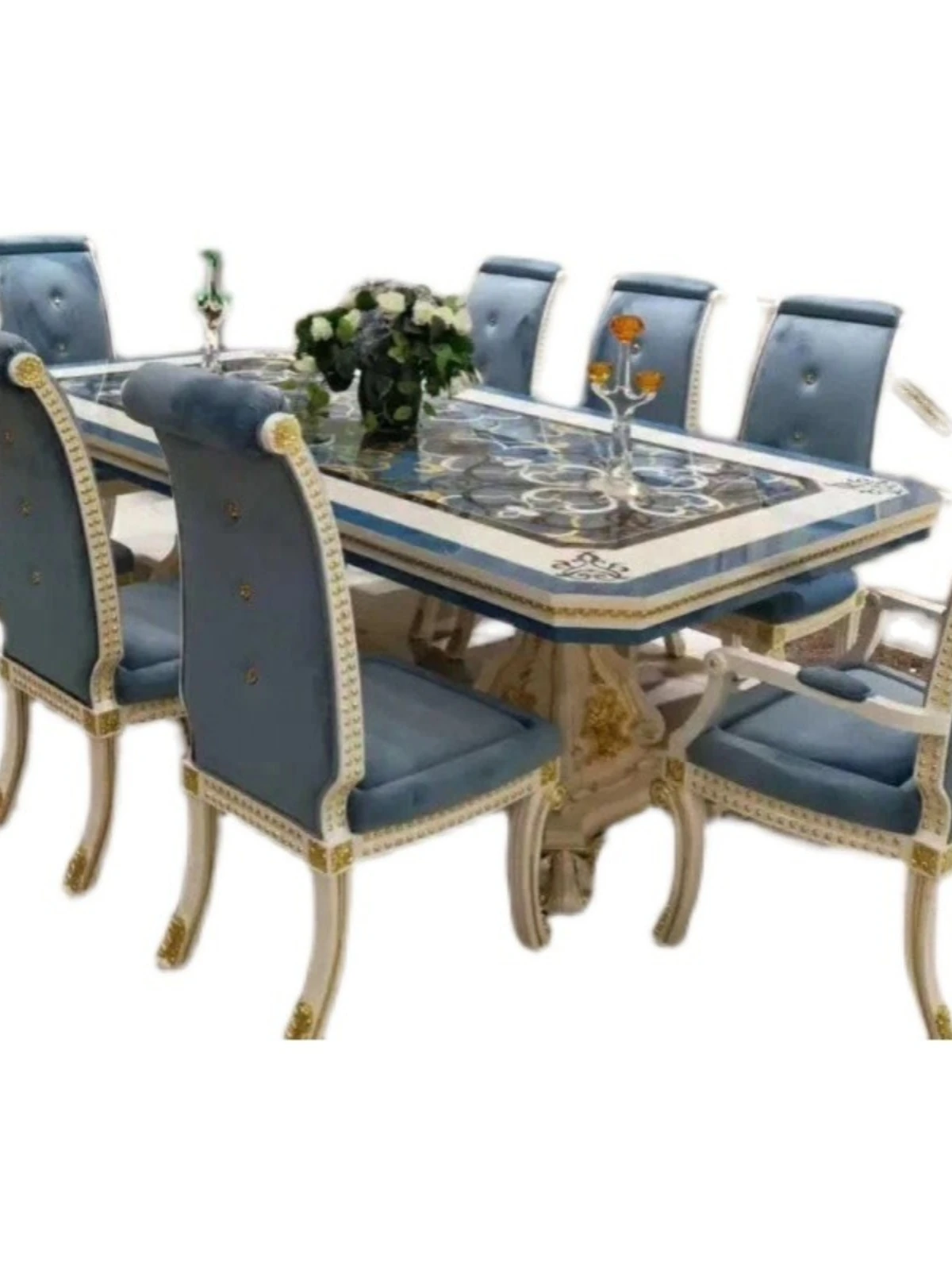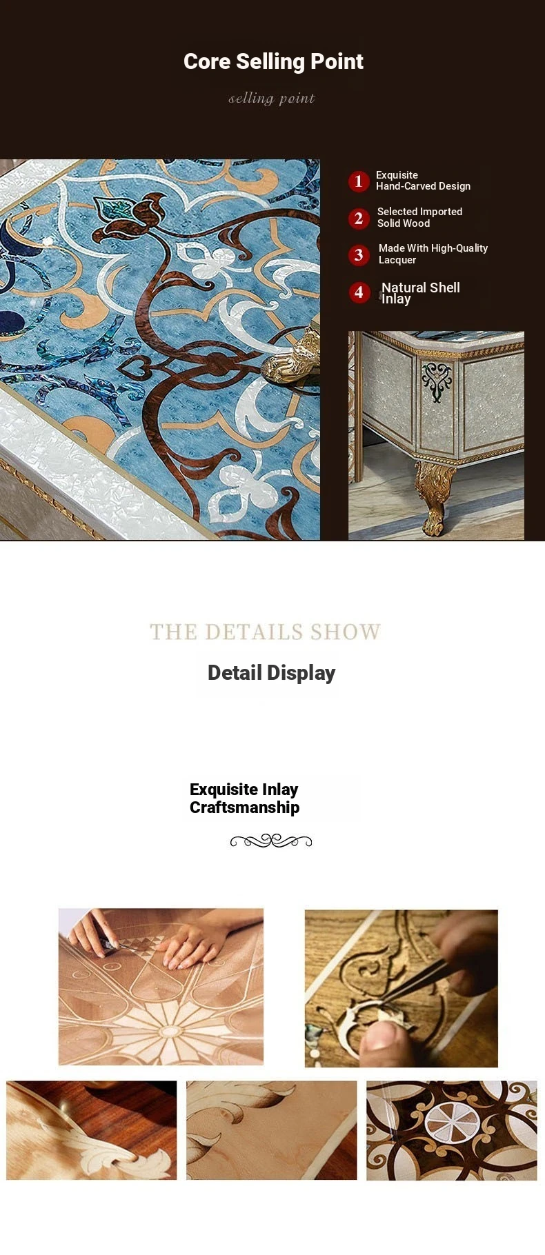Elegant European Style Solid Wood Carved Dining Table with Shell Inlay - Rectangular Home Dining Set for French Palace Villas, Complete with Chairs