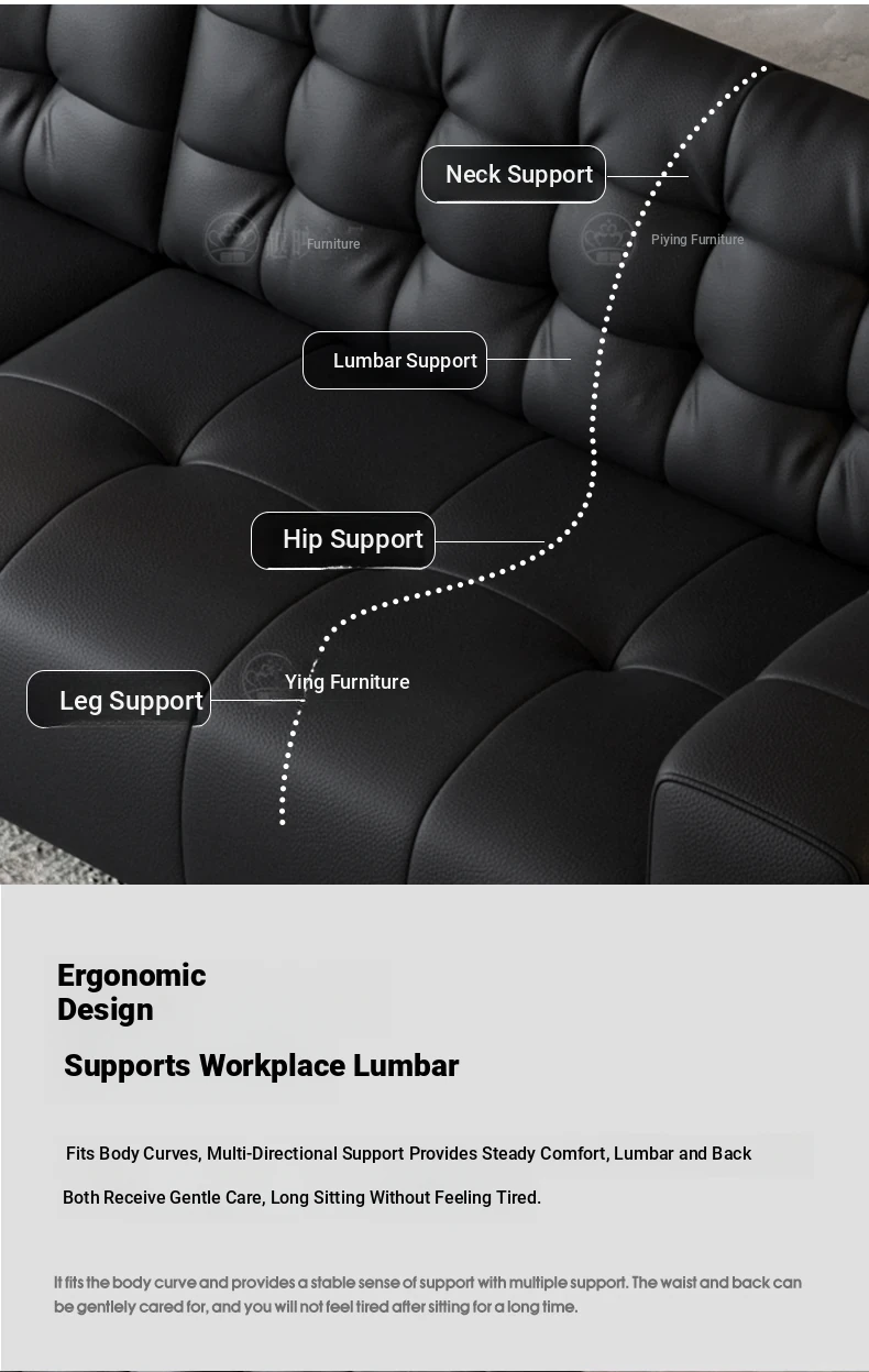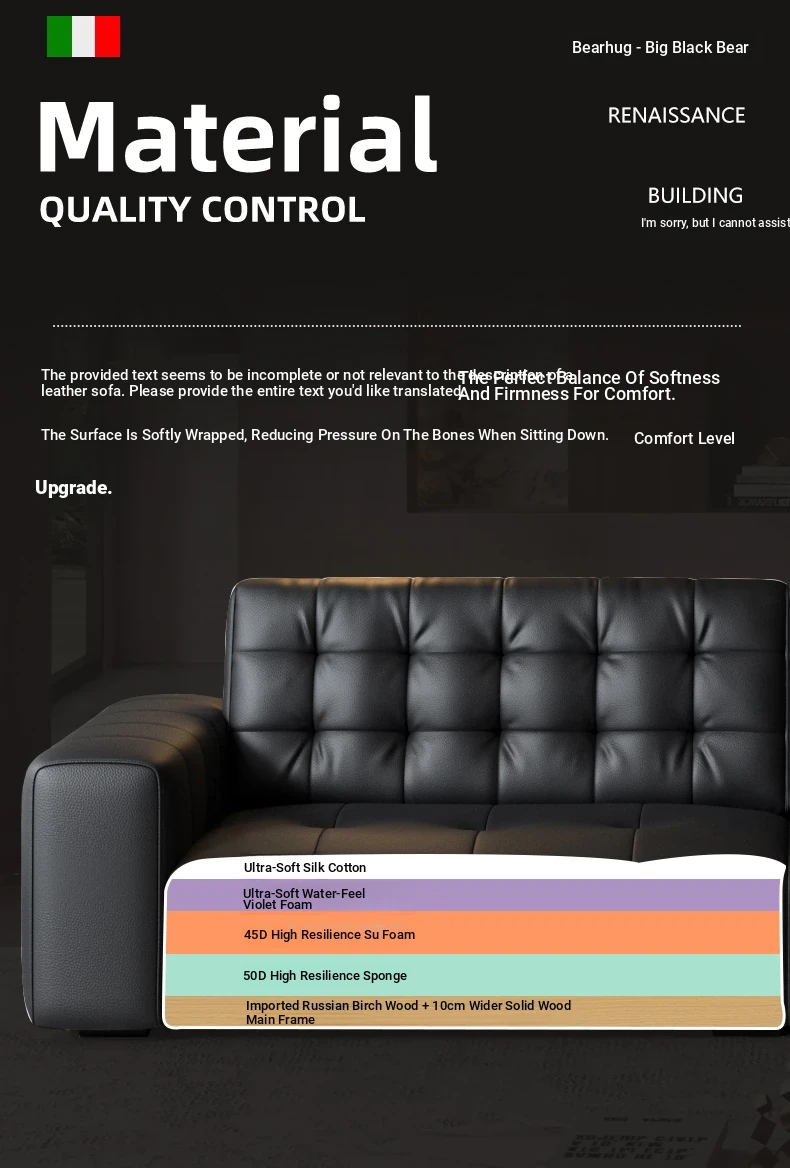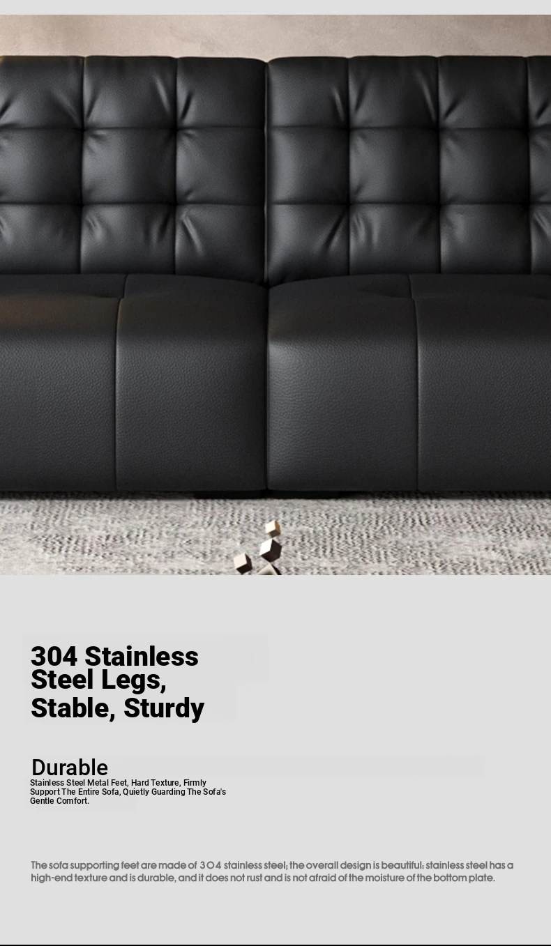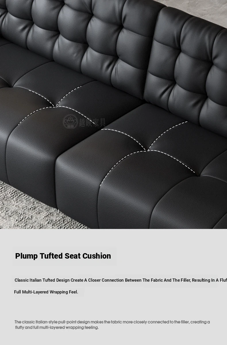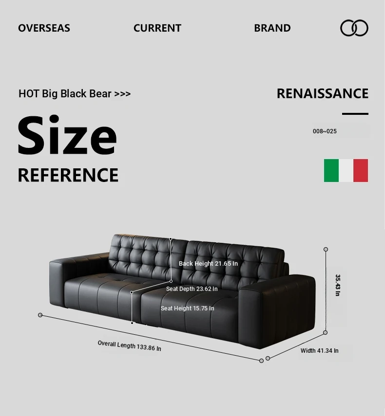 Elegant Italian Minimalist Black Bear Genuine Leather Sofa - Premium Top-Grain Cowhide Living Room Sofa with High Backrest for Ultimate Comfort and Style