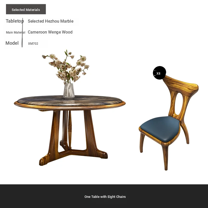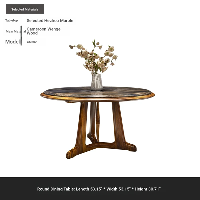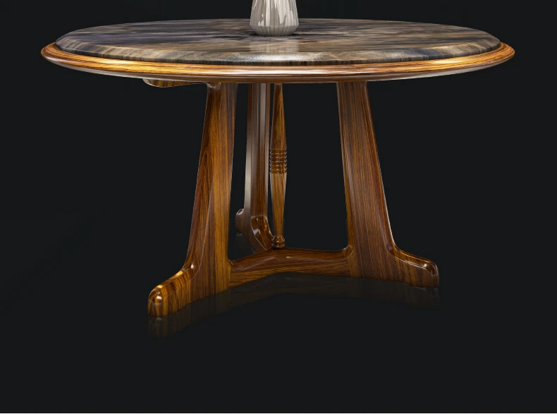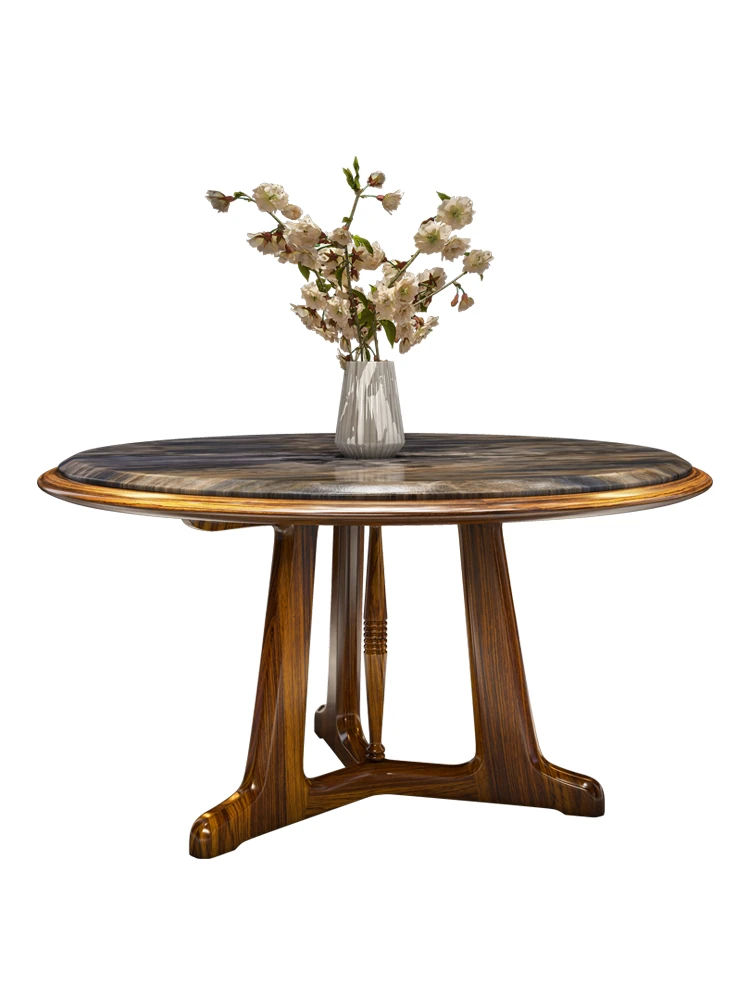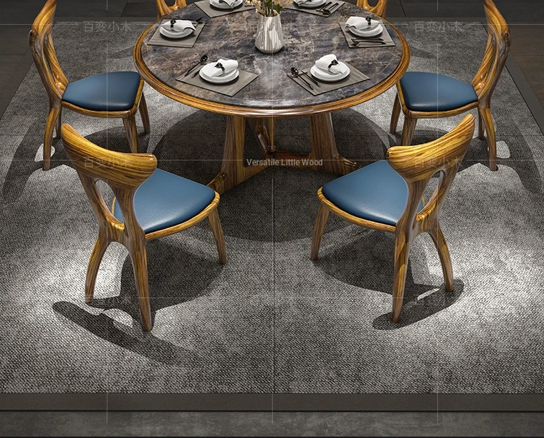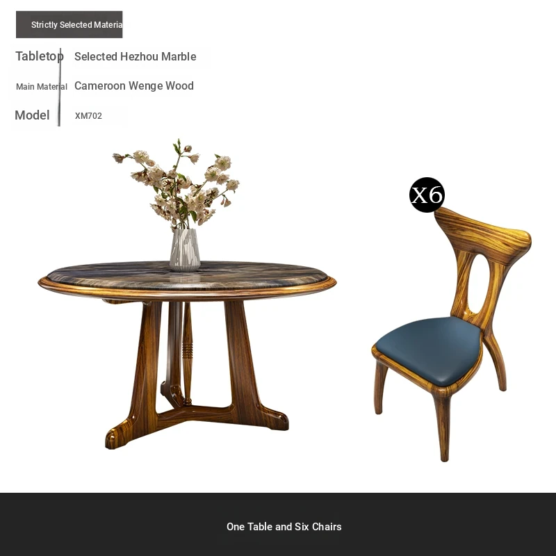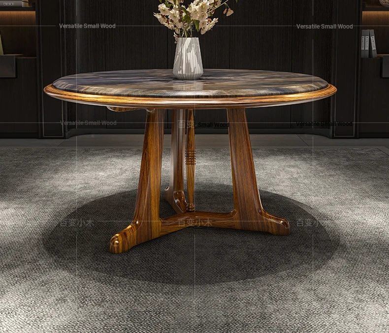 Elegant New Chinese Style Black Gold Wood Dining Table and Chair Set - Round Marble Solid Wood Dining Table for 6-8 People, Perfect for Your Home Dining Room Furniture