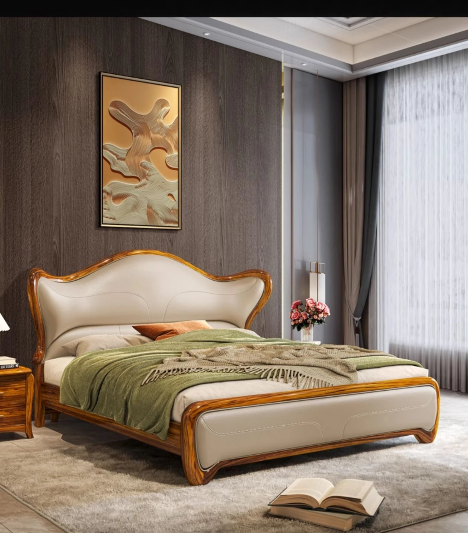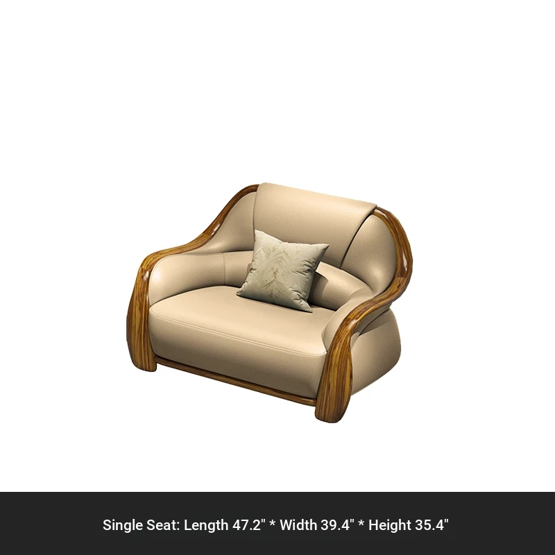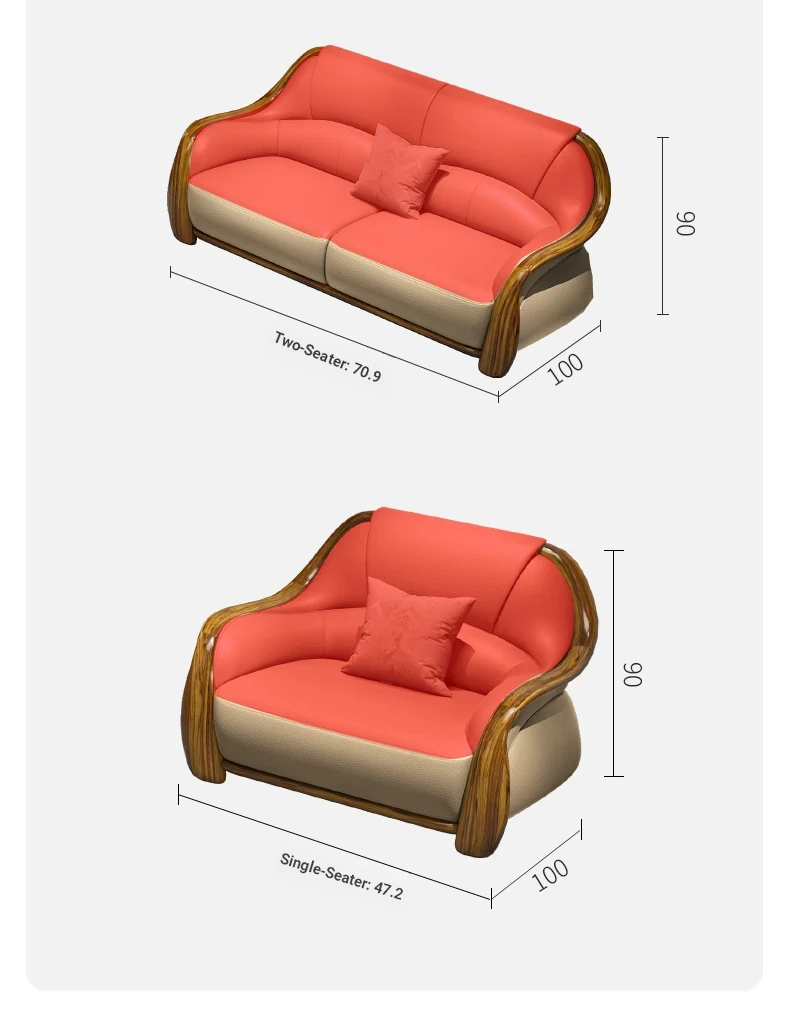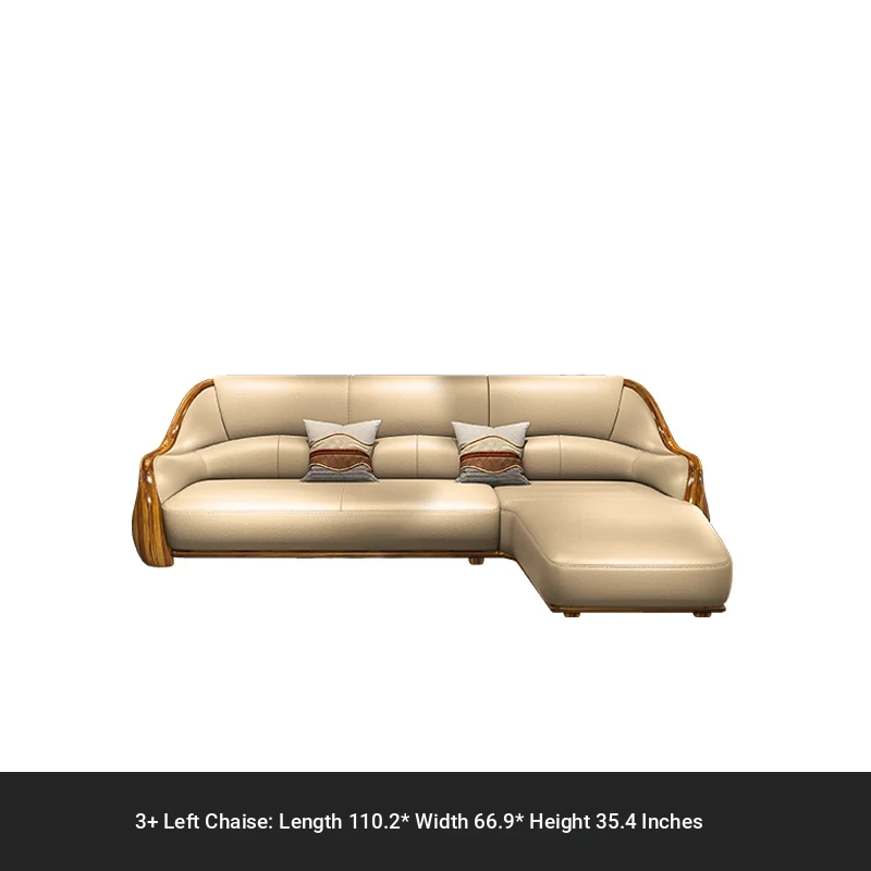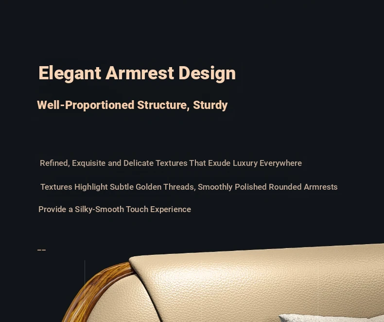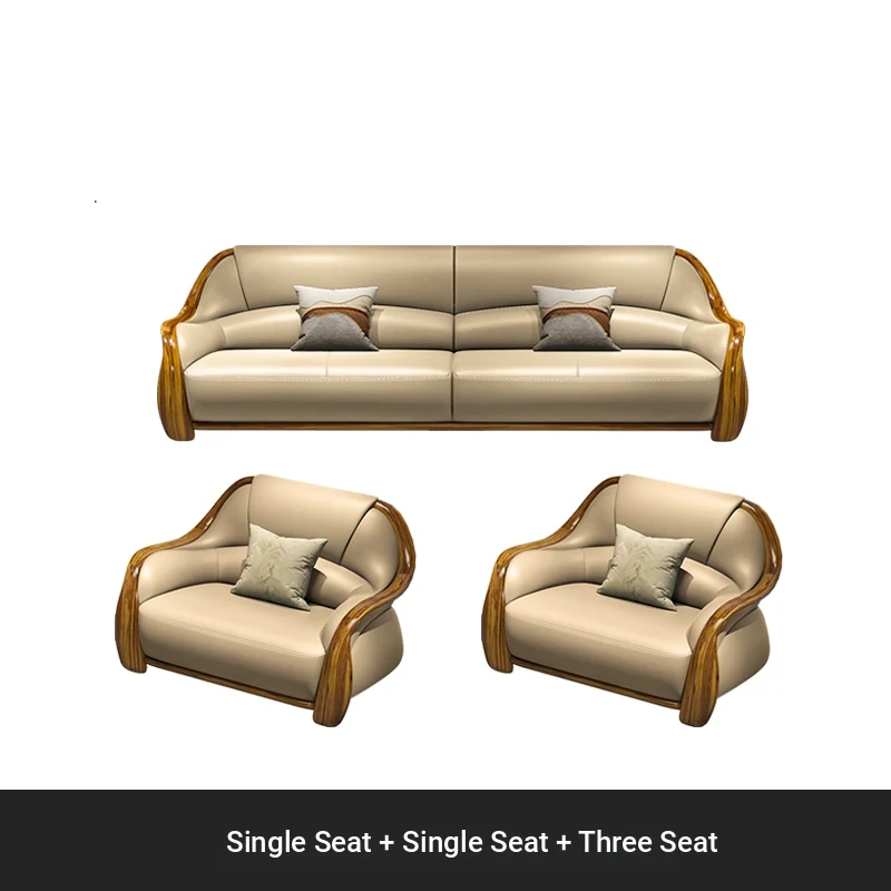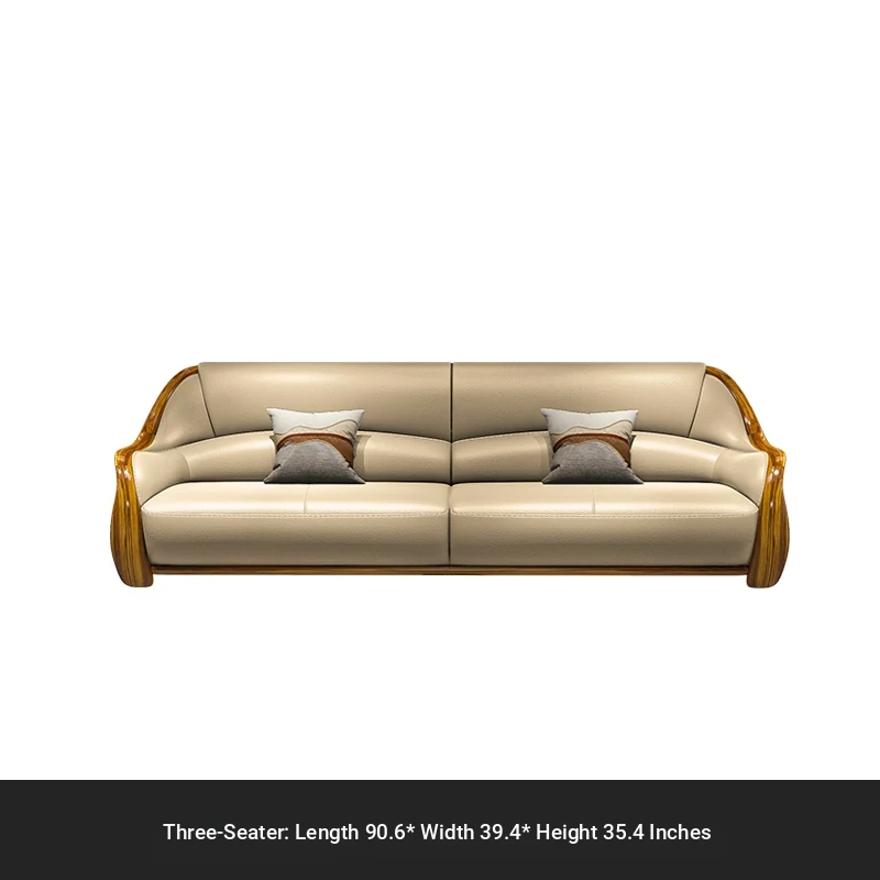 Elegant New Chinese Style Black Gold Wood Genuine Leather Sofa Set - High-End Solid Wood Living Room Furniture for Villas, Crafted in Foshan, Guangdong.