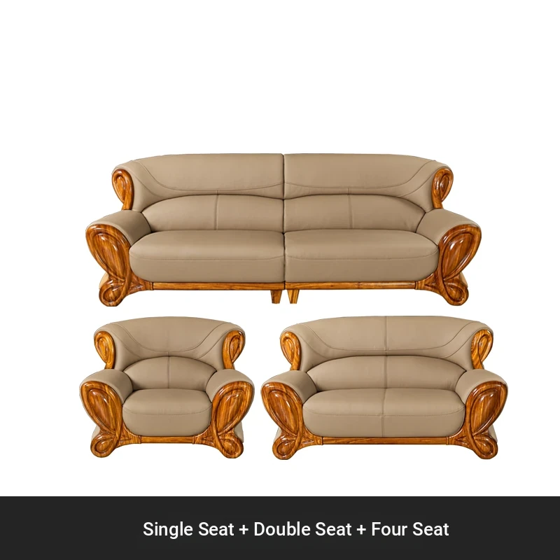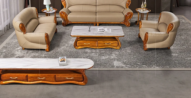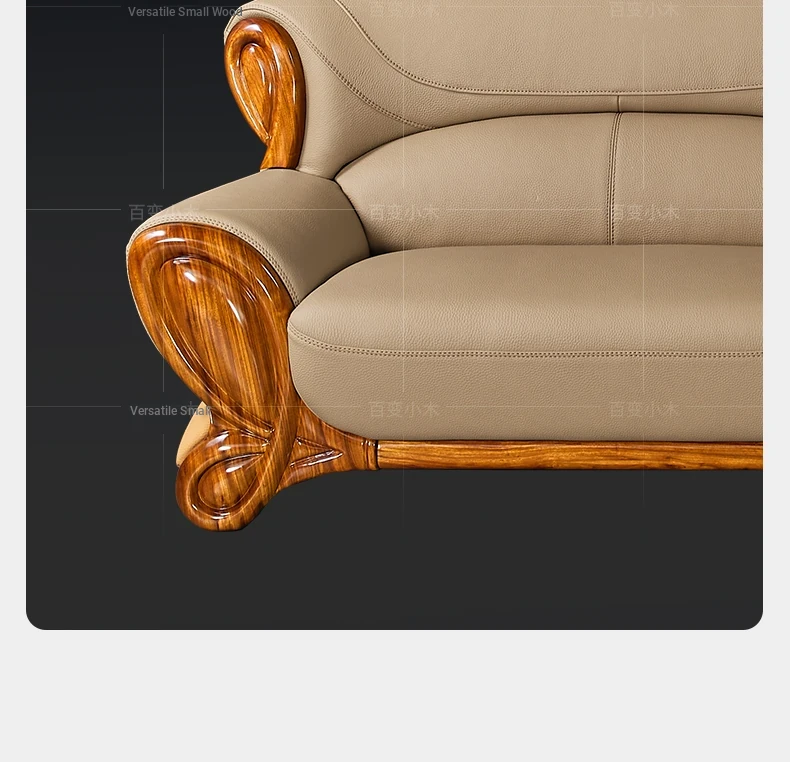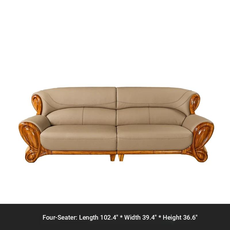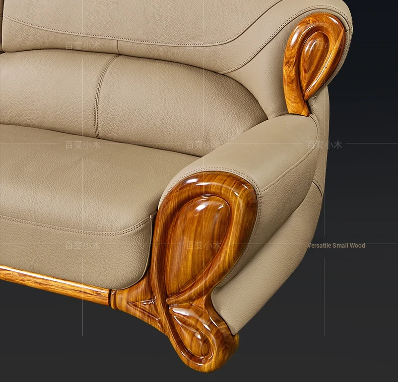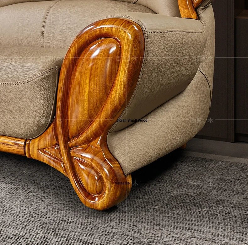 Elegant New Chinese Style Black Wood Genuine Leather Sofa - Modern European Large Solid Wood Sofa for Villas and Spacious Living Rooms, Perfect for Luxury Home Decor