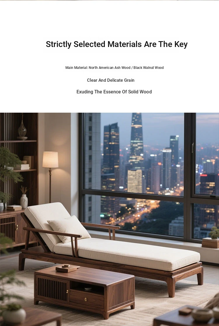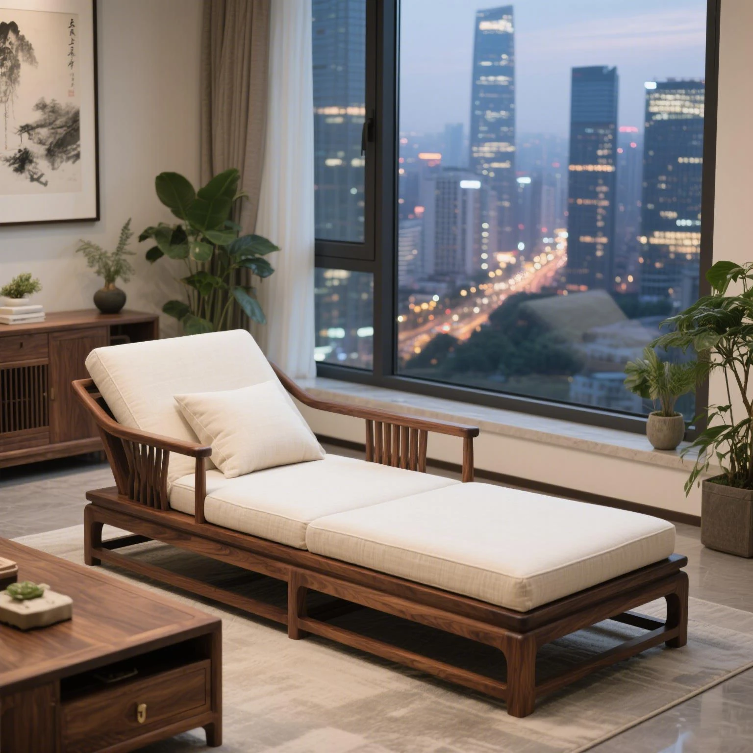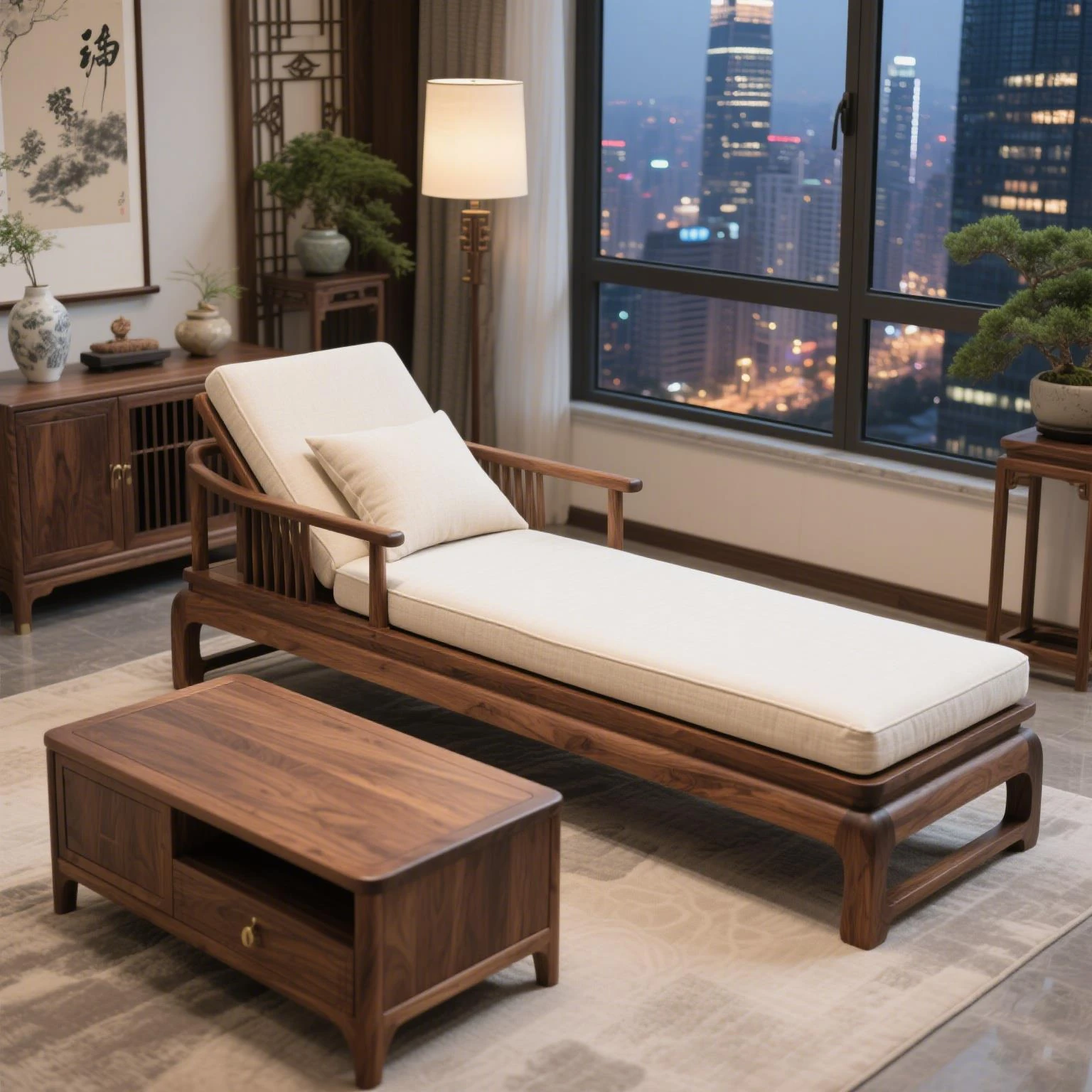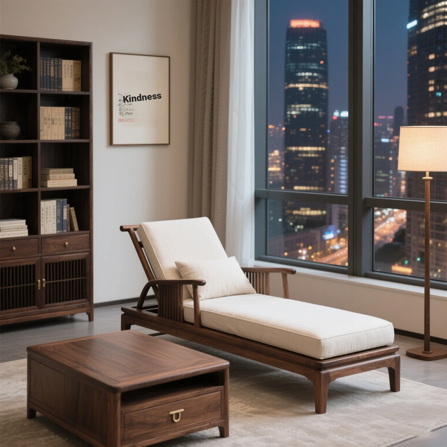 Elegant New Chinese Style Solid Black Walnut Lounge Chair - Multifunctional Recliner for Balcony and Living Room, Perfect for Relaxation and Office Use