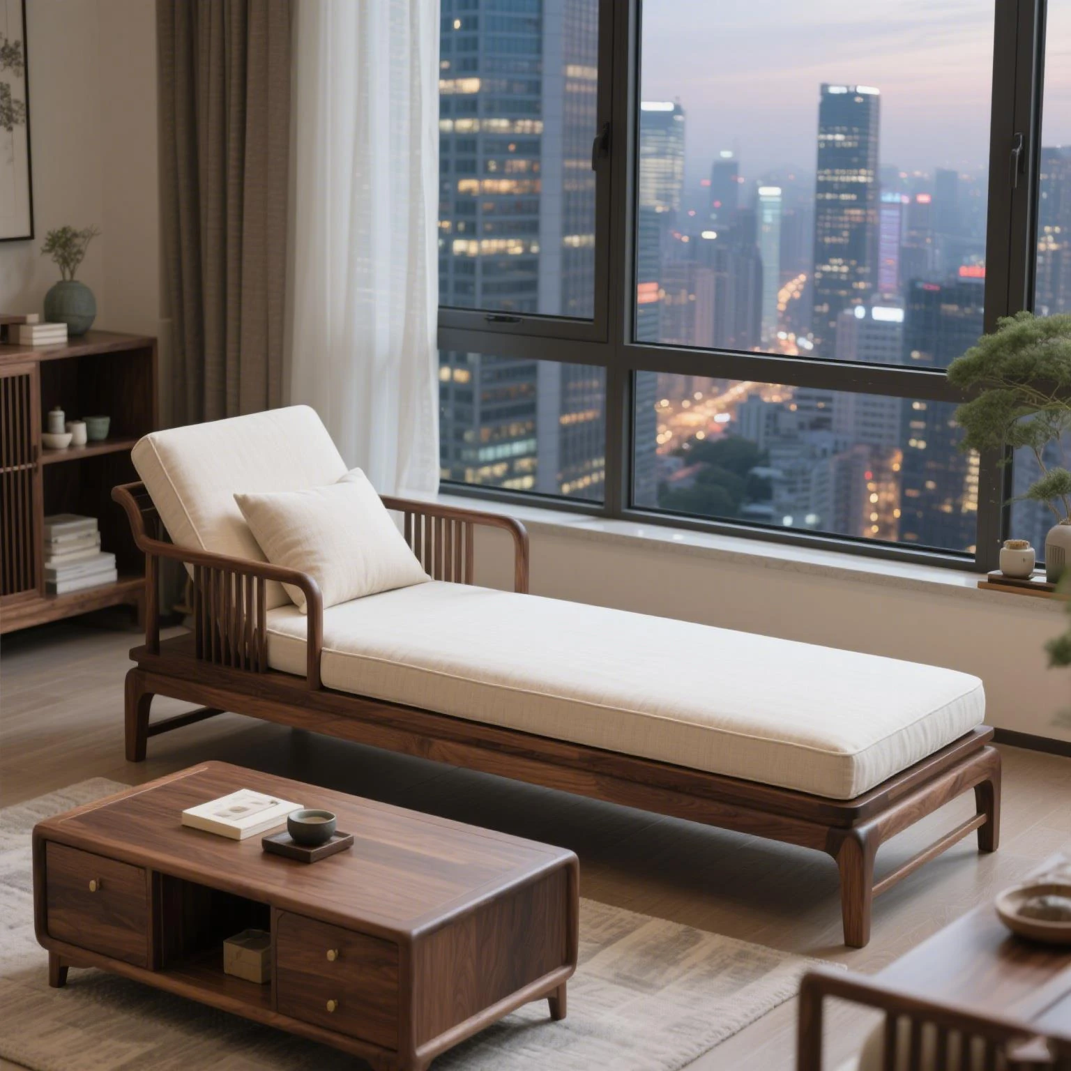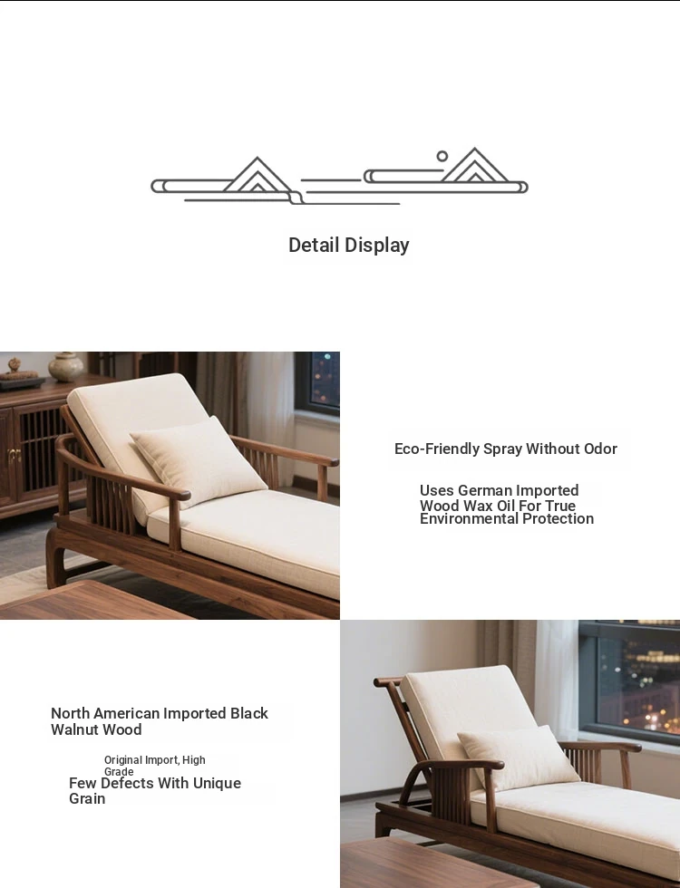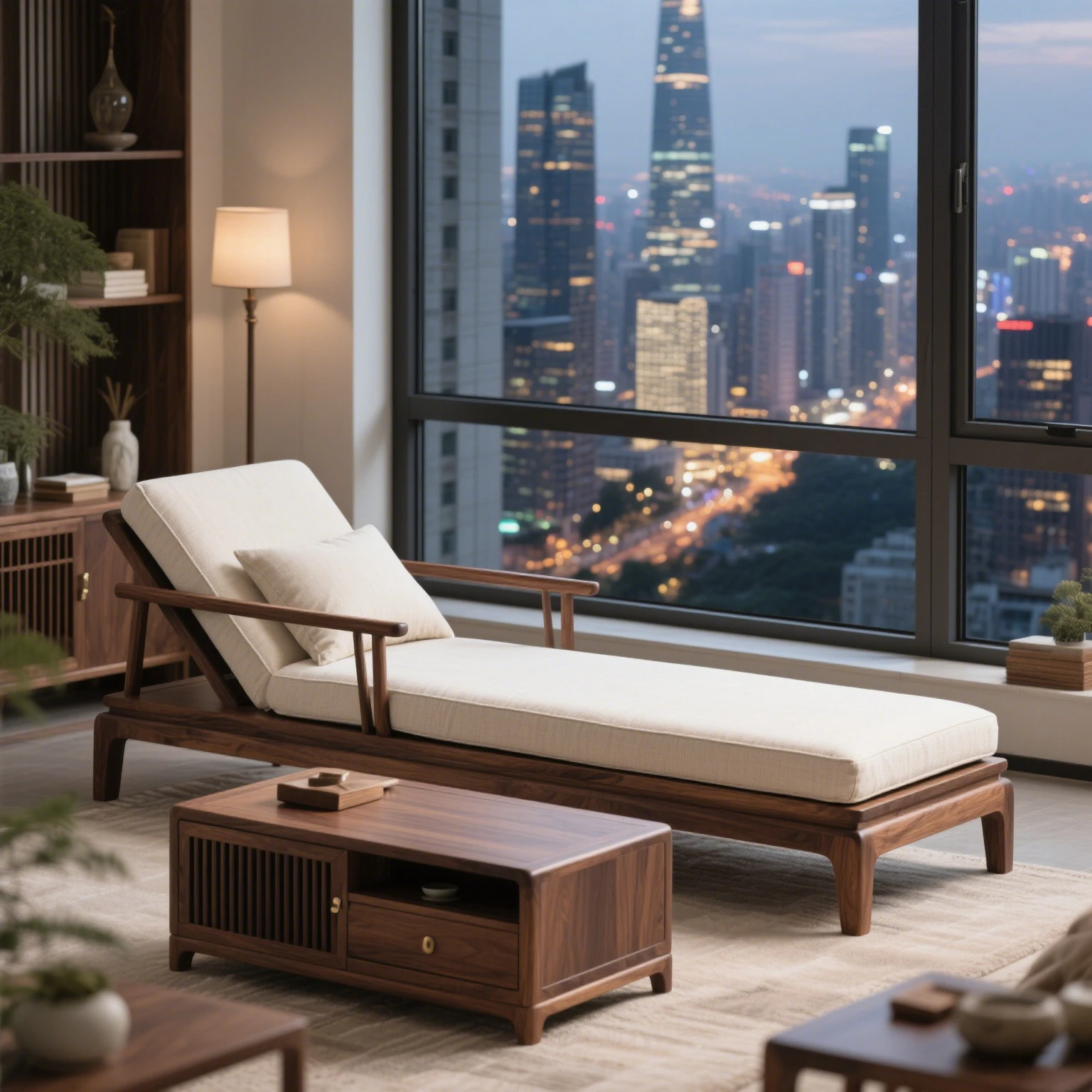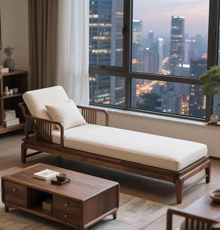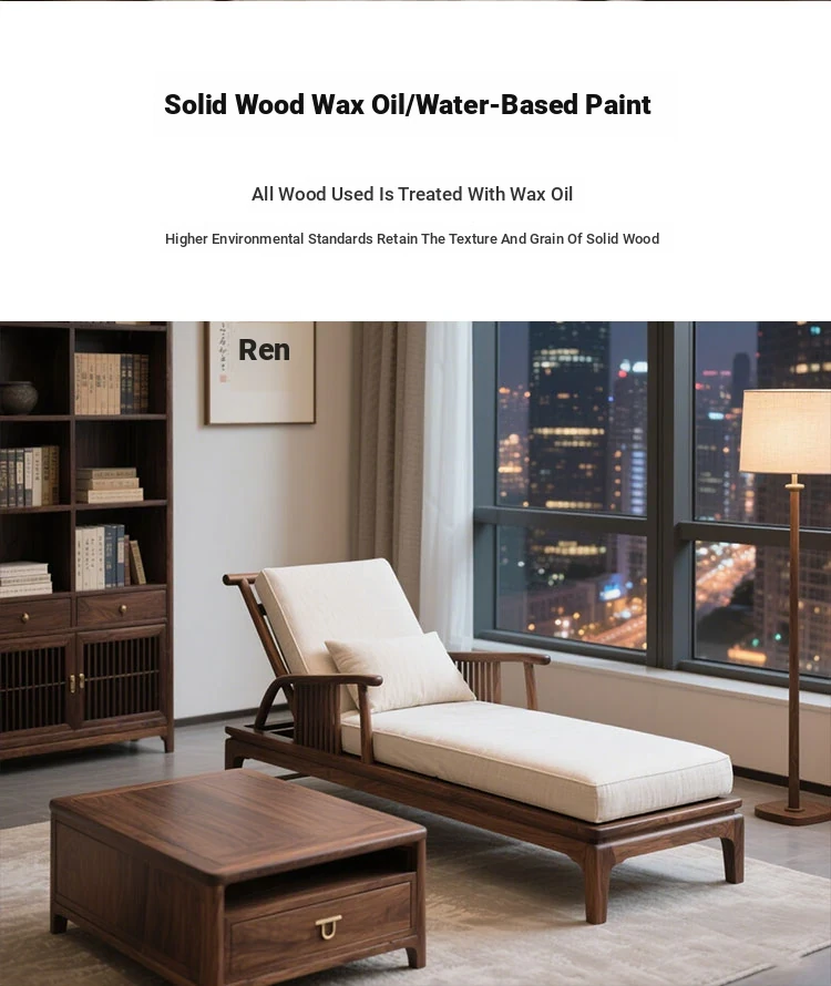 Elegant New Chinese Style Solid Black Walnut Lounge Chair - Multifunctional Recliner for Balcony and Living Room, Perfect for Relaxation and Office Use