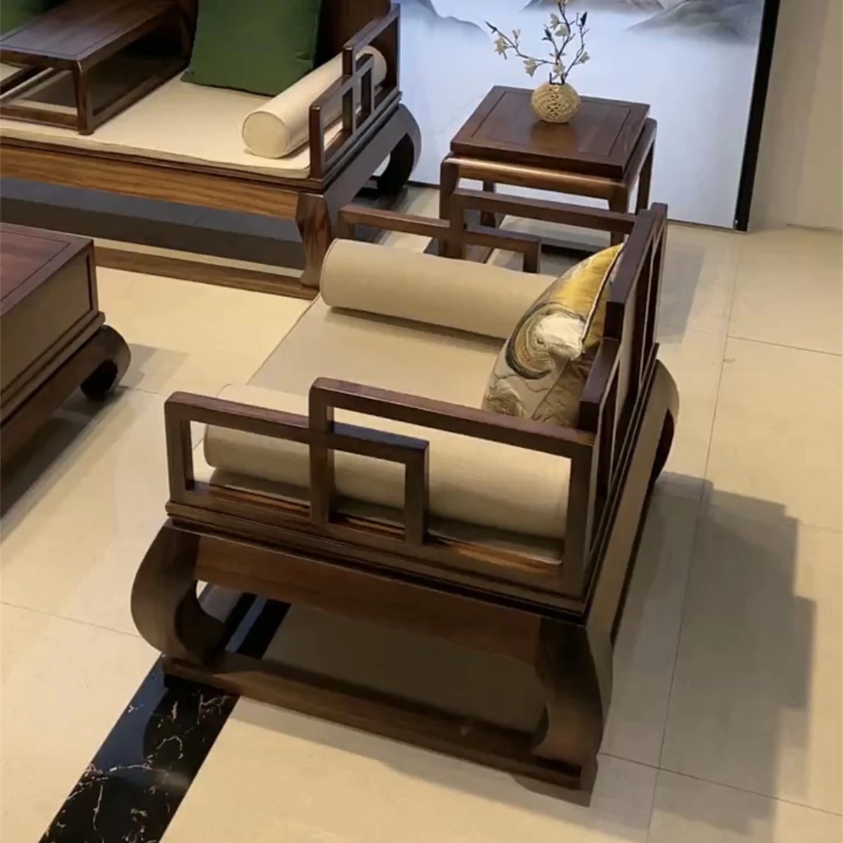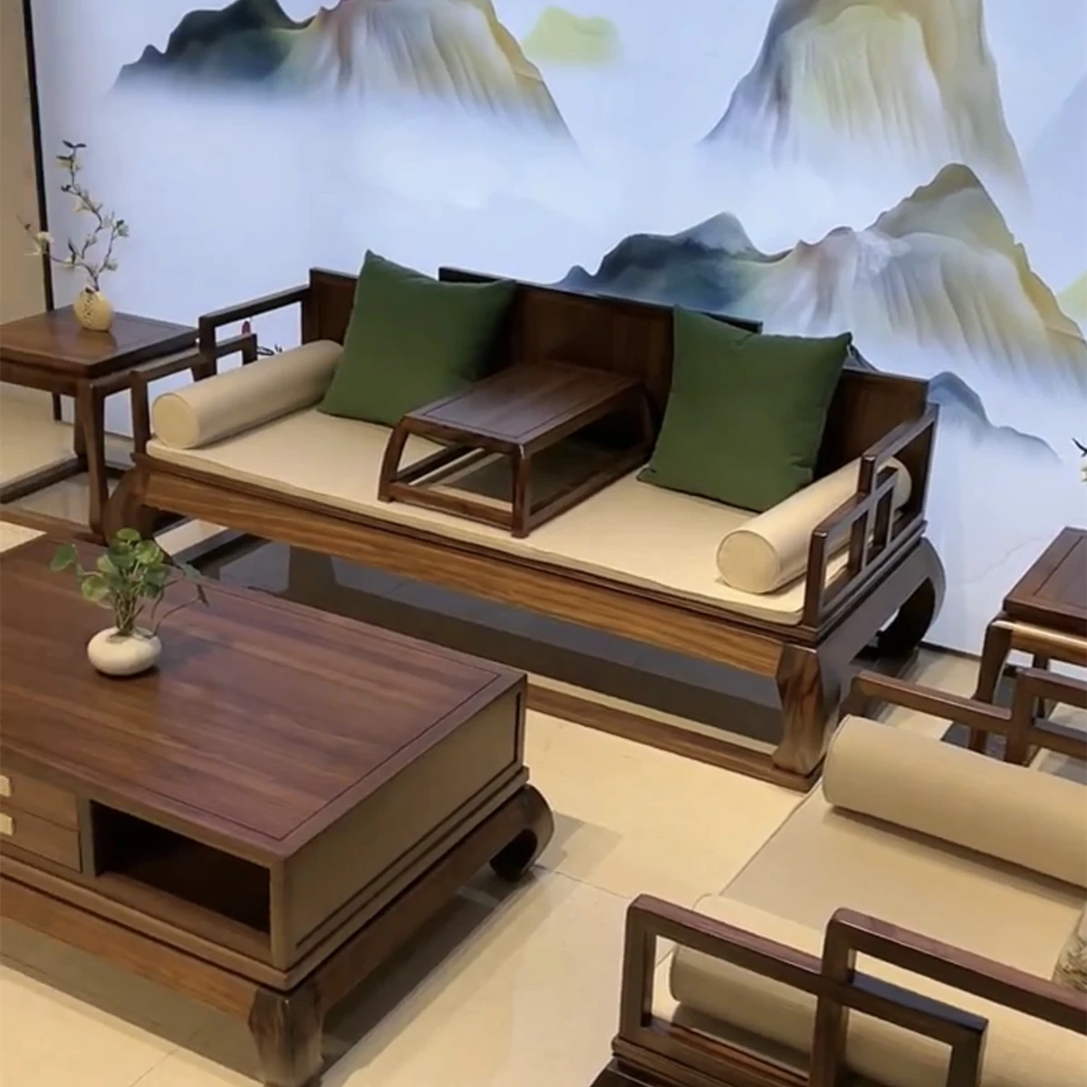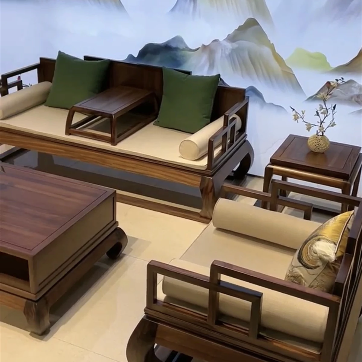 Elegant New Chinese Style Solid Wood Sofa Set - Premium Wenge Wood Minimalist Lounging Bed for Living Room, Tea Room, Clubhouse, and Villa Furniture