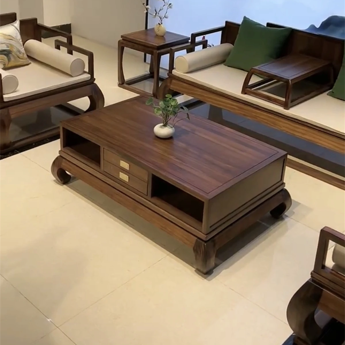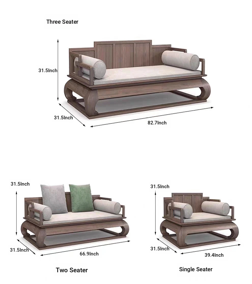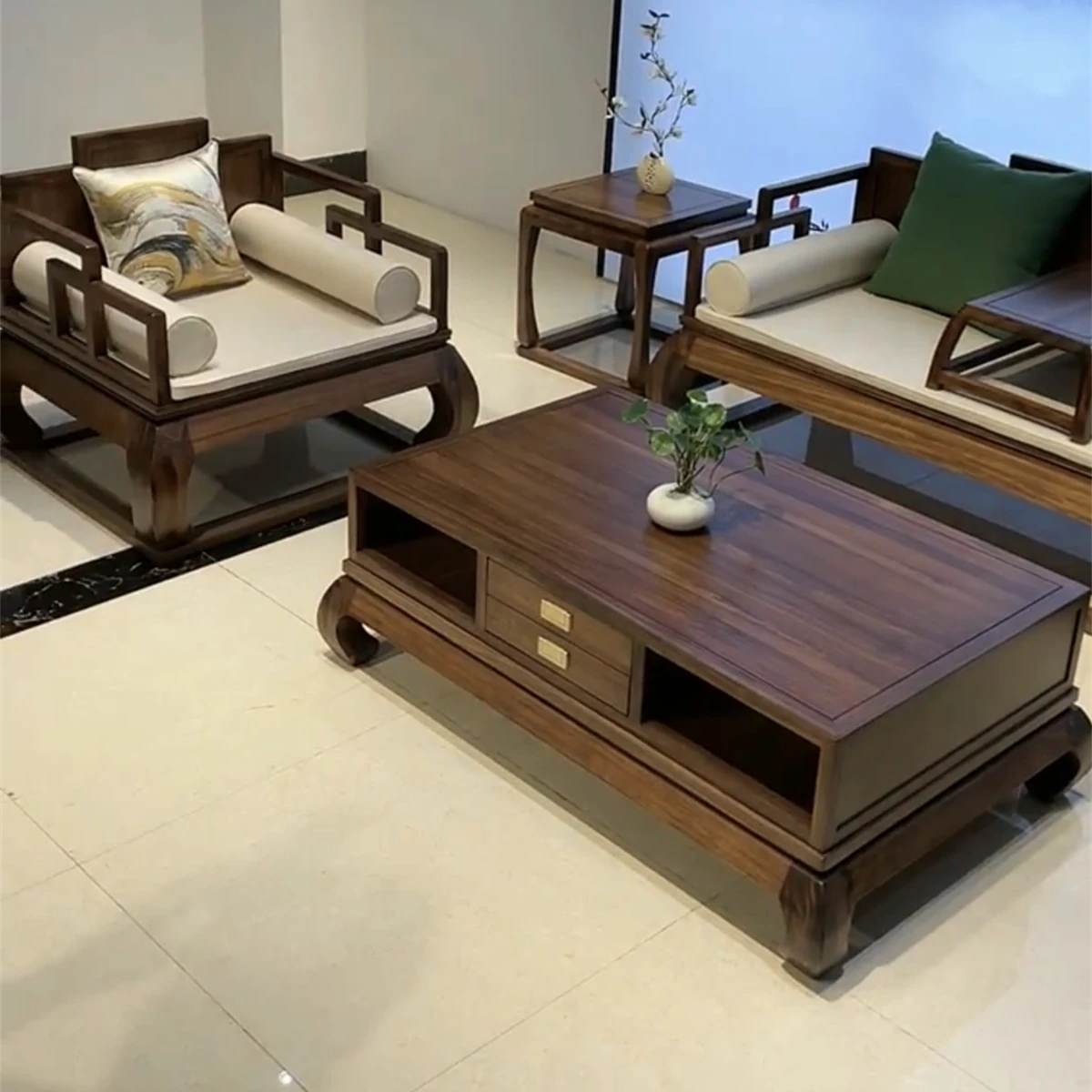 Elegant New Chinese Style Solid Wood Sofa Set - Premium Wenge Wood Minimalist Lounging Bed for Living Room, Tea Room, Clubhouse, and Villa Furniture