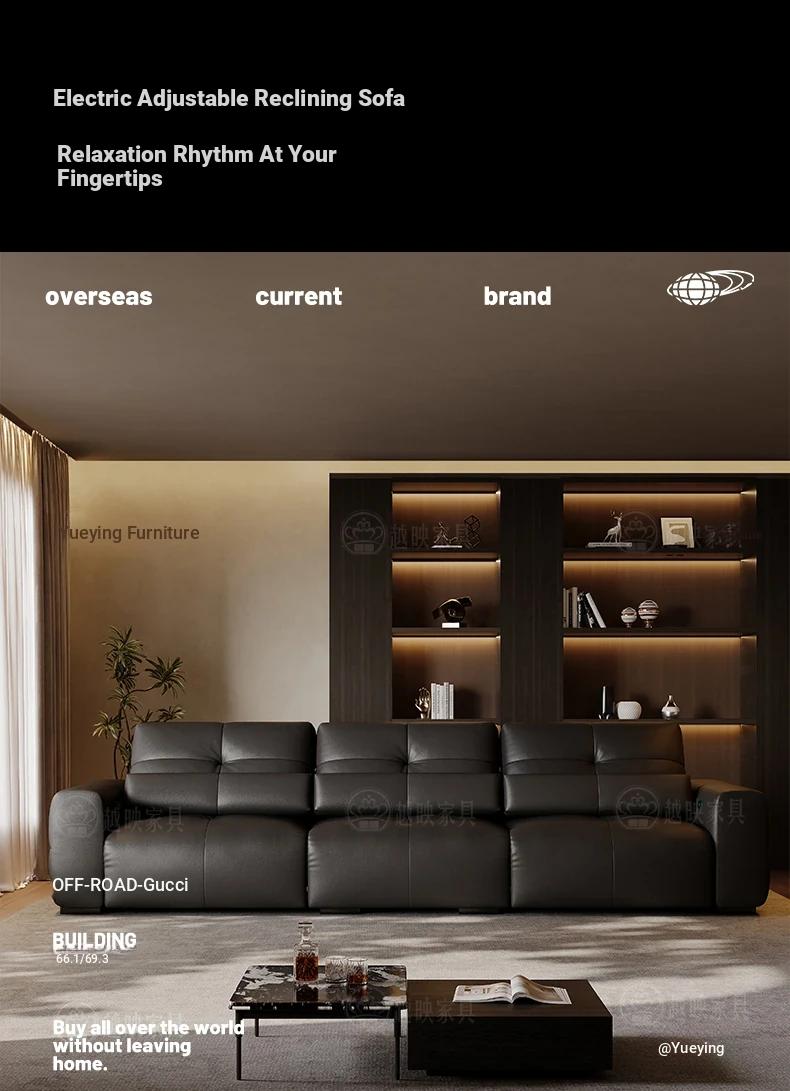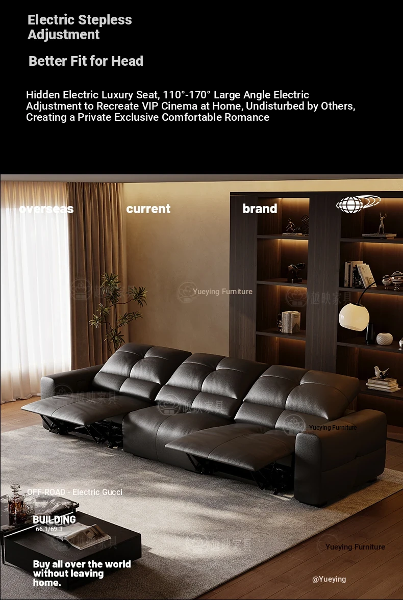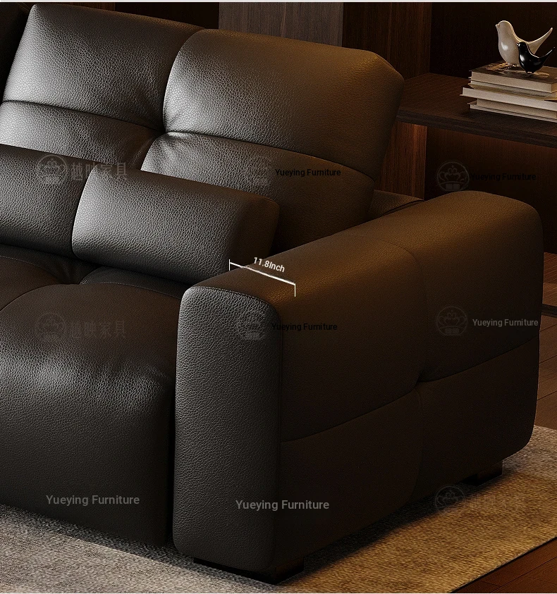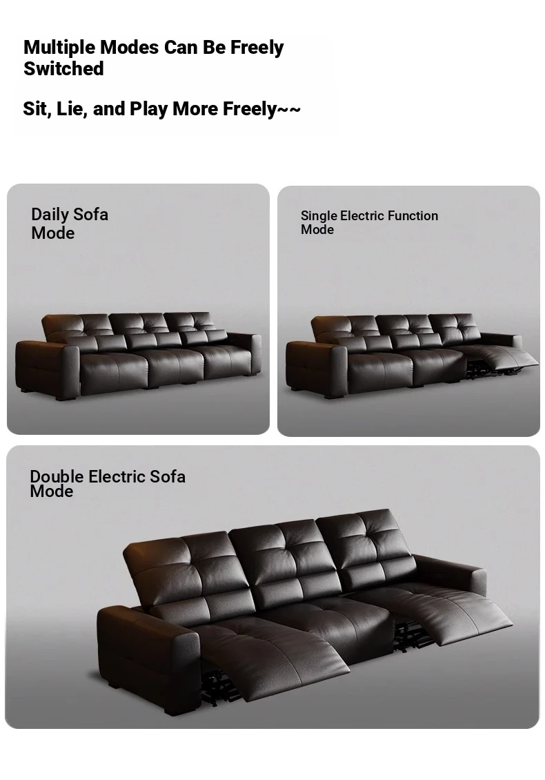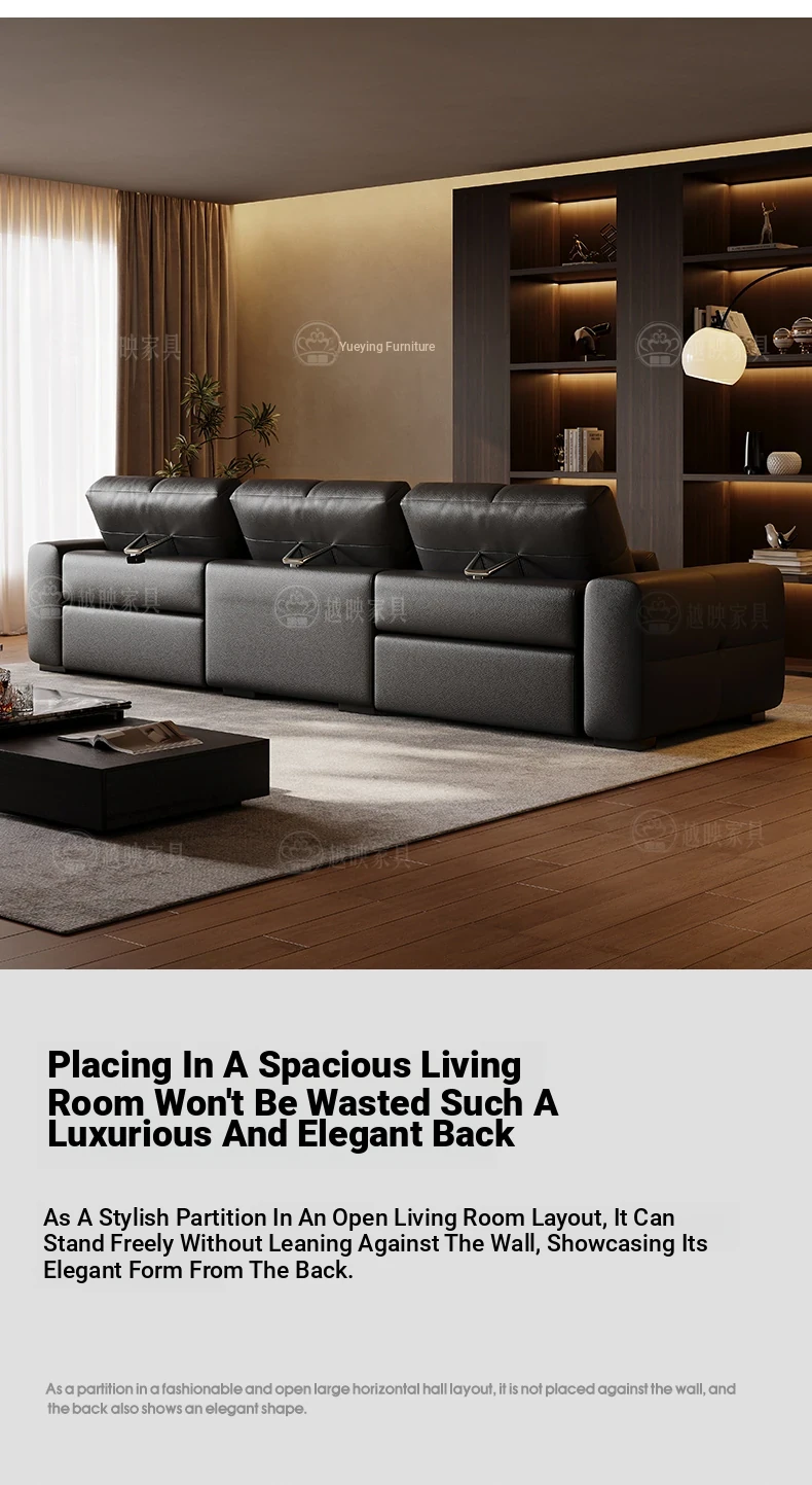 Elegant Retro Electric Reclining Sofa - Italian Minimalist High-Back Design with Semi-Leather and Full-Leather Options for Luxurious Living in Spacious Villas