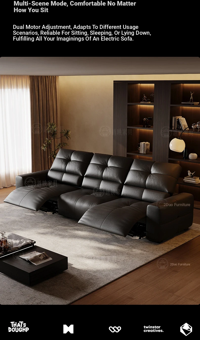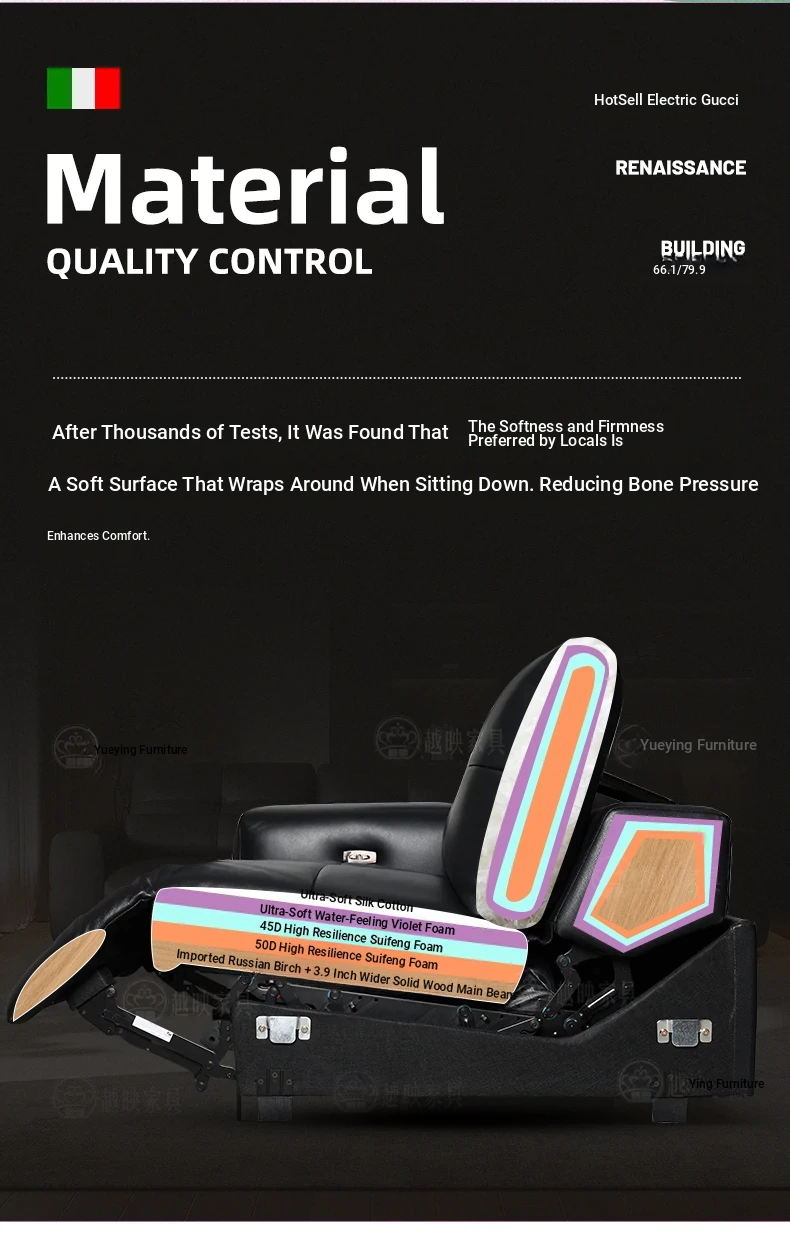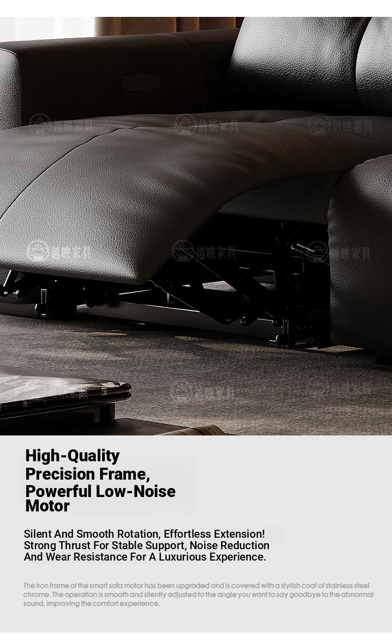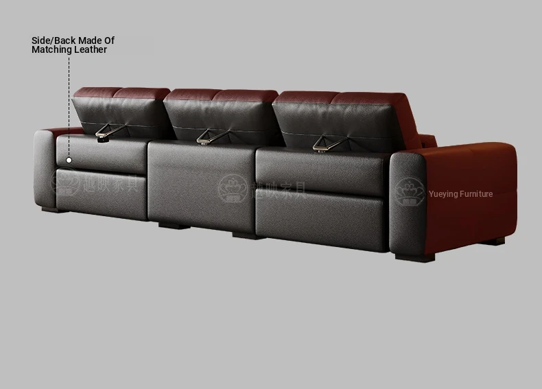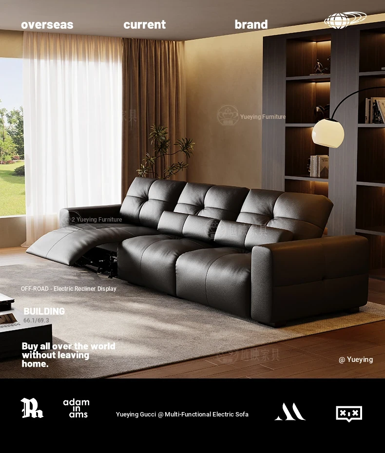 Elegant Retro Electric Reclining Sofa - Italian Minimalist High-Back Design with Semi-Leather and Full-Leather Options for Luxurious Living in Spacious Villas