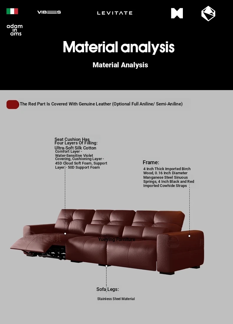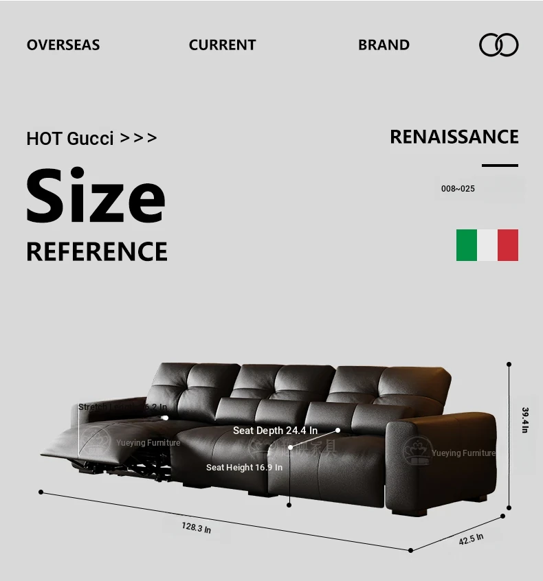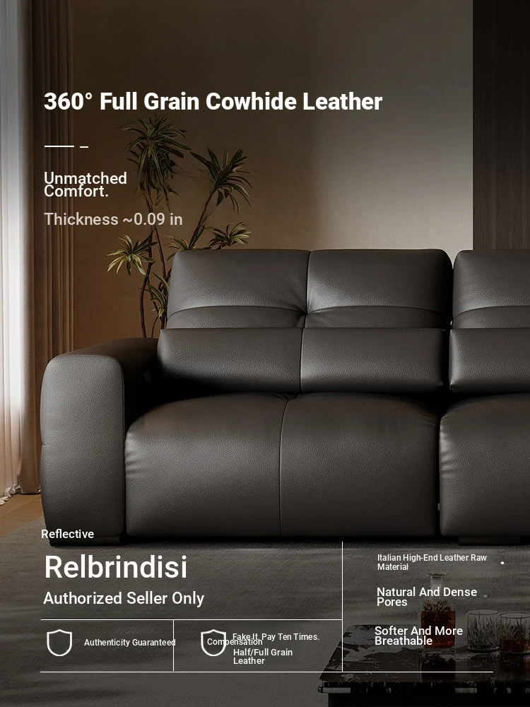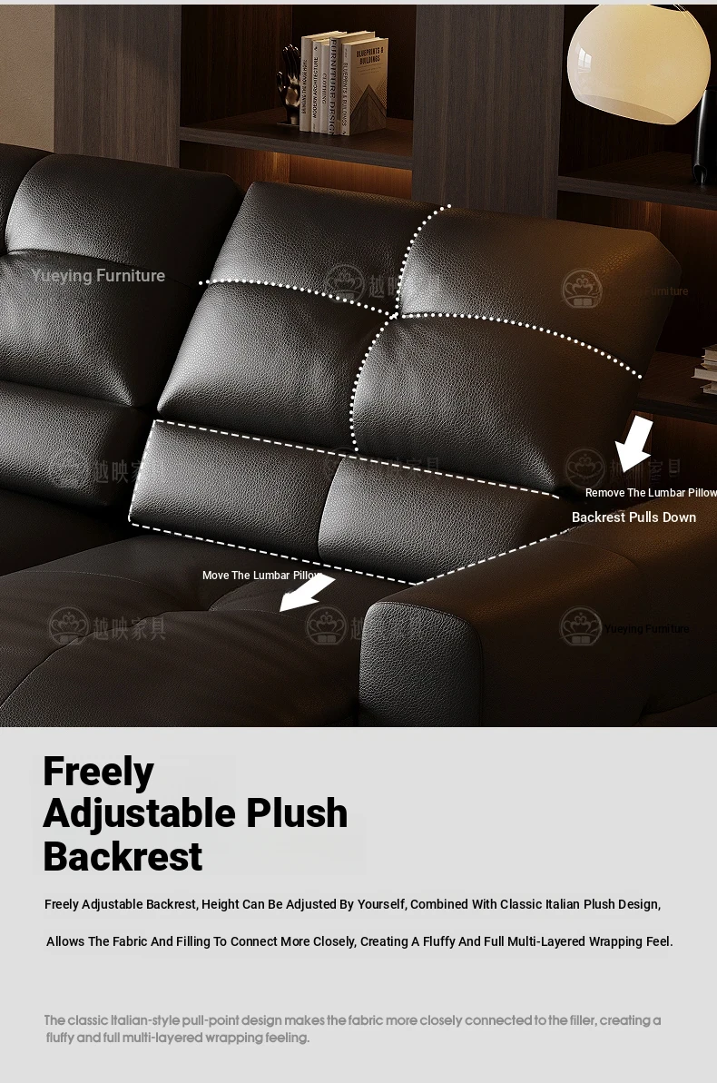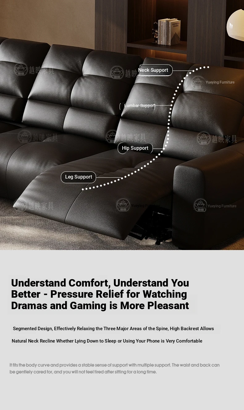 Elegant Retro Electric Reclining Sofa - Italian Minimalist High-Back Design with Semi-Leather and Full-Leather Options for Luxurious Living in Spacious Villas