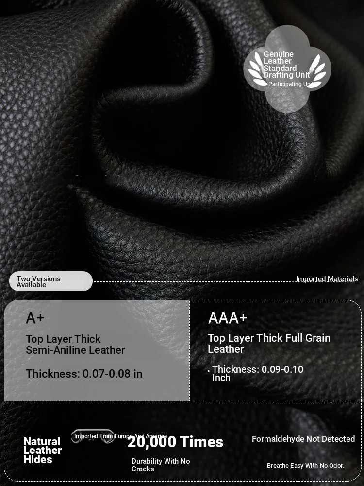 Italian Import, 0.08in thickened semi-green leather, fully wrapped leather, Russian Import birch frame, Relbrindisi brand leather source-traceable code
