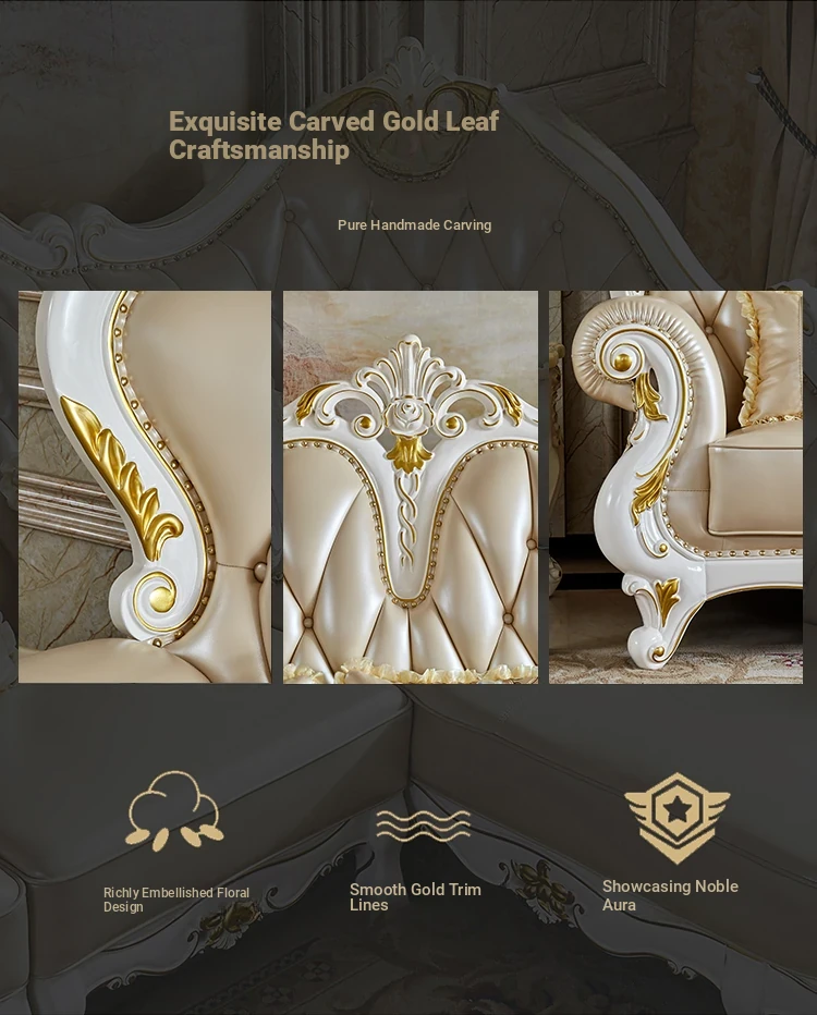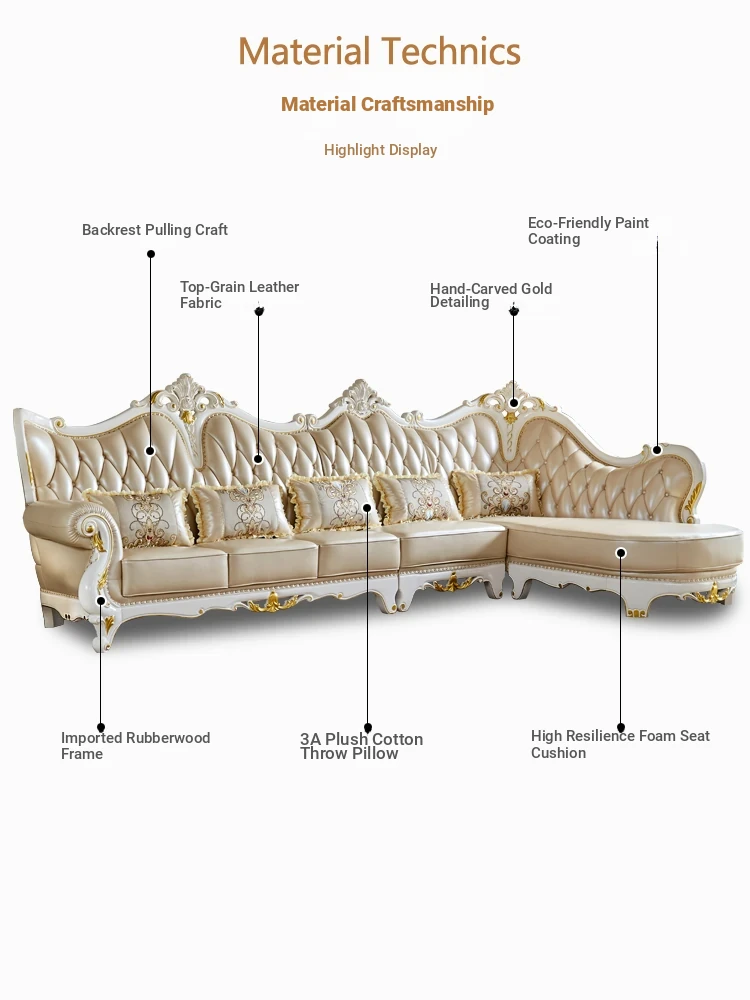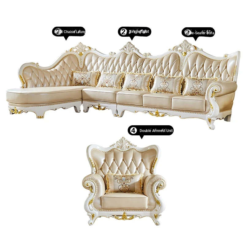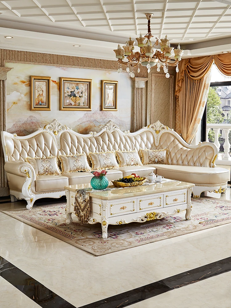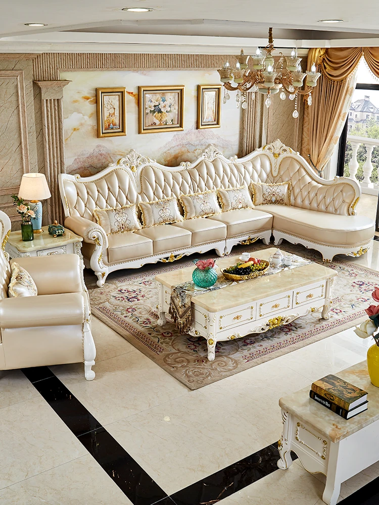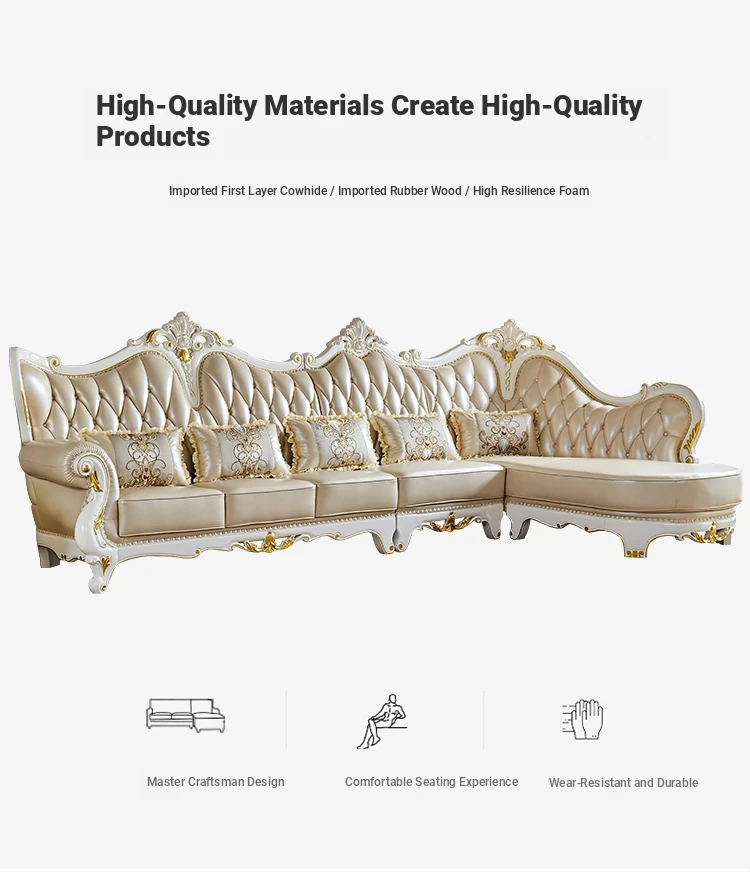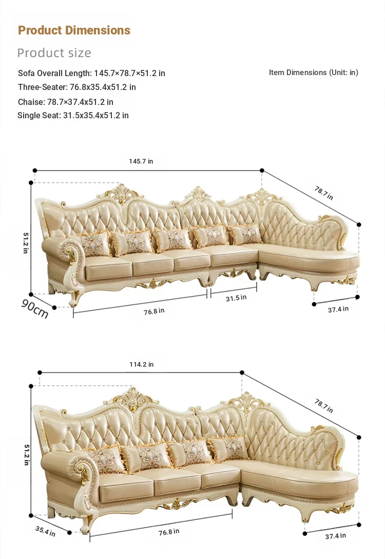 European-style Genuine Leather Sofa Set – Luxurious Solid Wood Carved Corner Sofa for Spacious Living Rooms and Villas – Perfect for Modern Elegance and Comfort