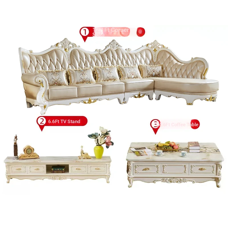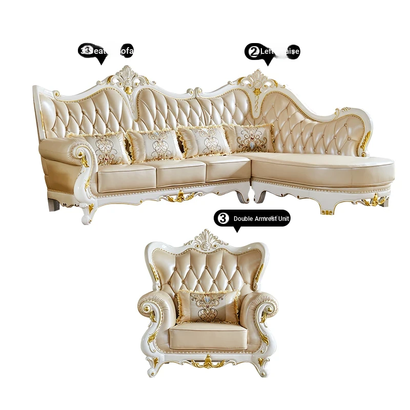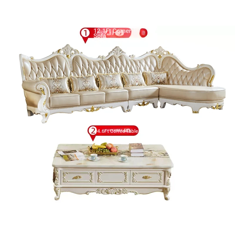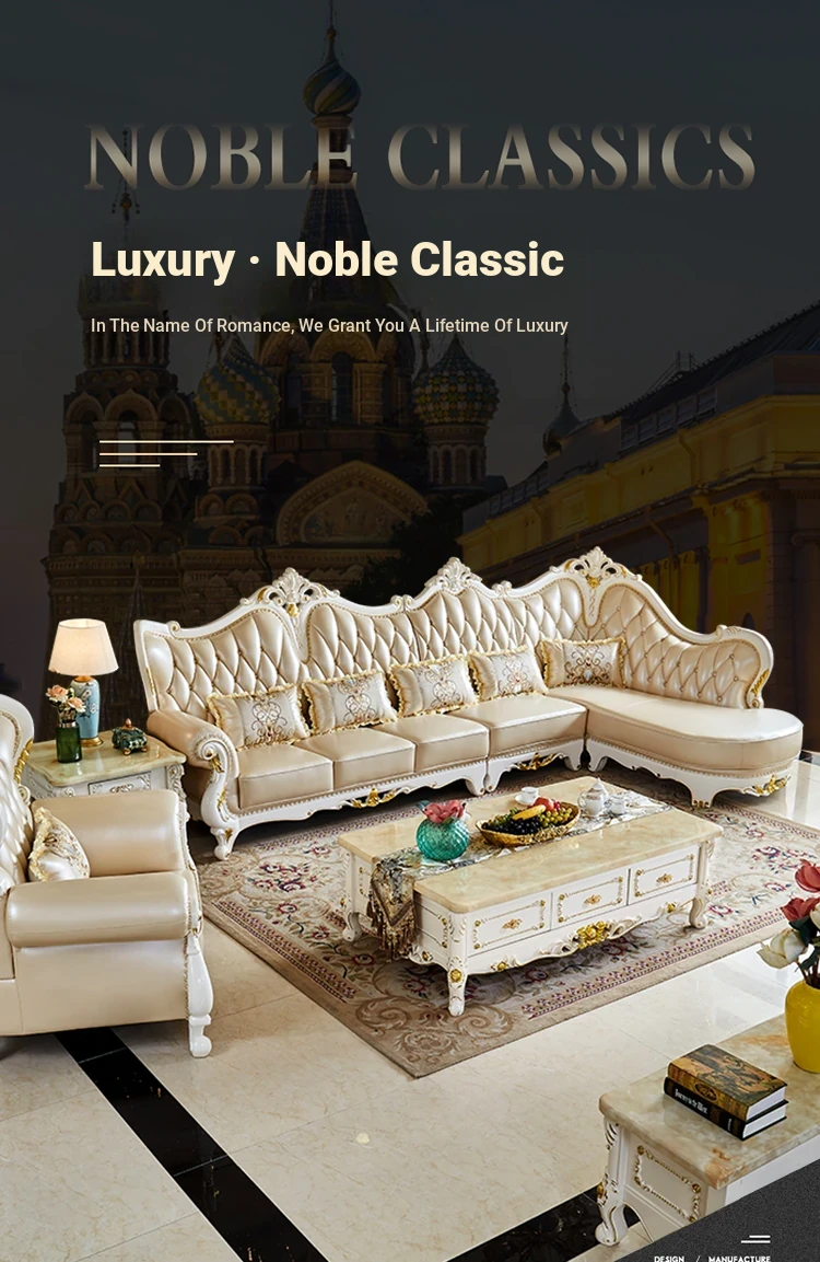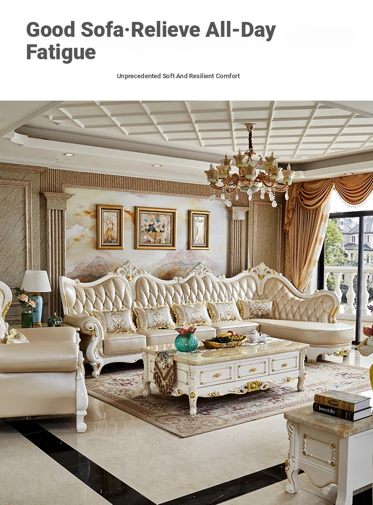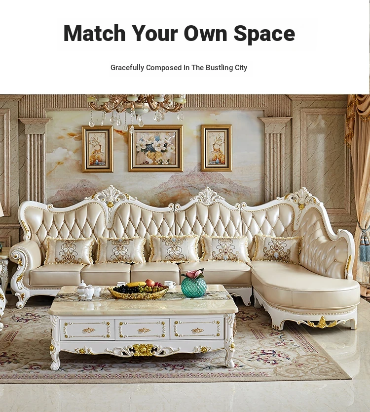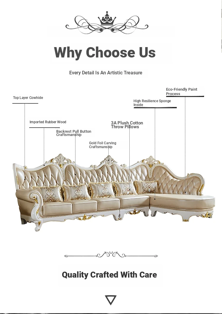 European-style Genuine Leather Sofa Set – Luxurious Solid Wood Carved Corner Sofa for Spacious Living Rooms and Villas – Perfect for Modern Elegance and Comfort