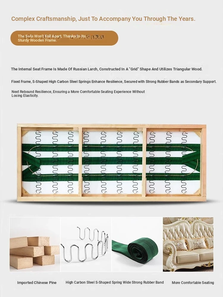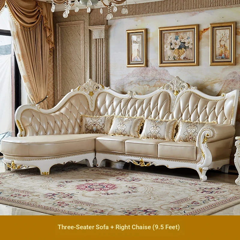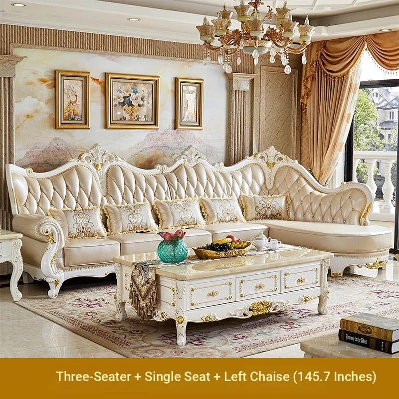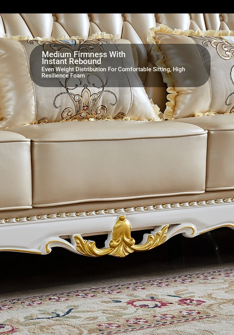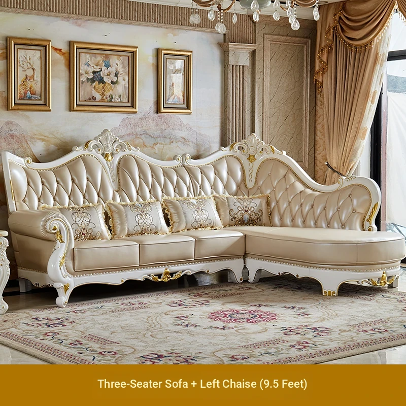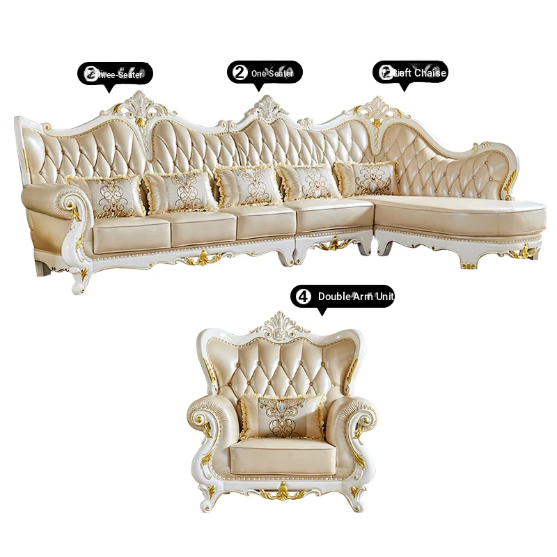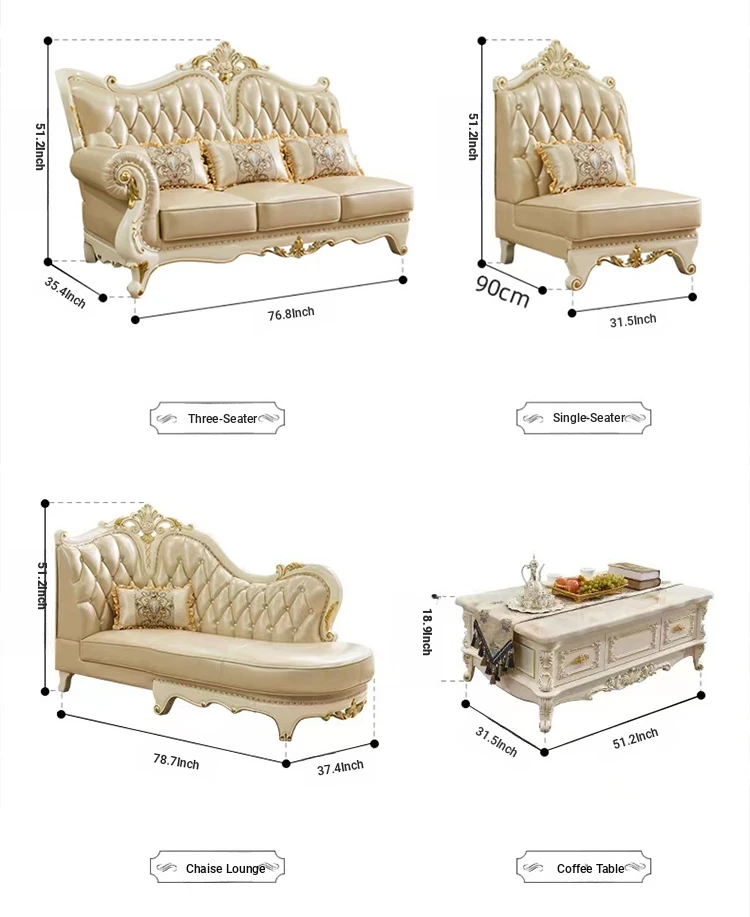 European-style Genuine Leather Sofa Set – Luxurious Solid Wood Carved Corner Sofa for Spacious Living Rooms and Villas – Perfect for Modern Elegance and Comfort