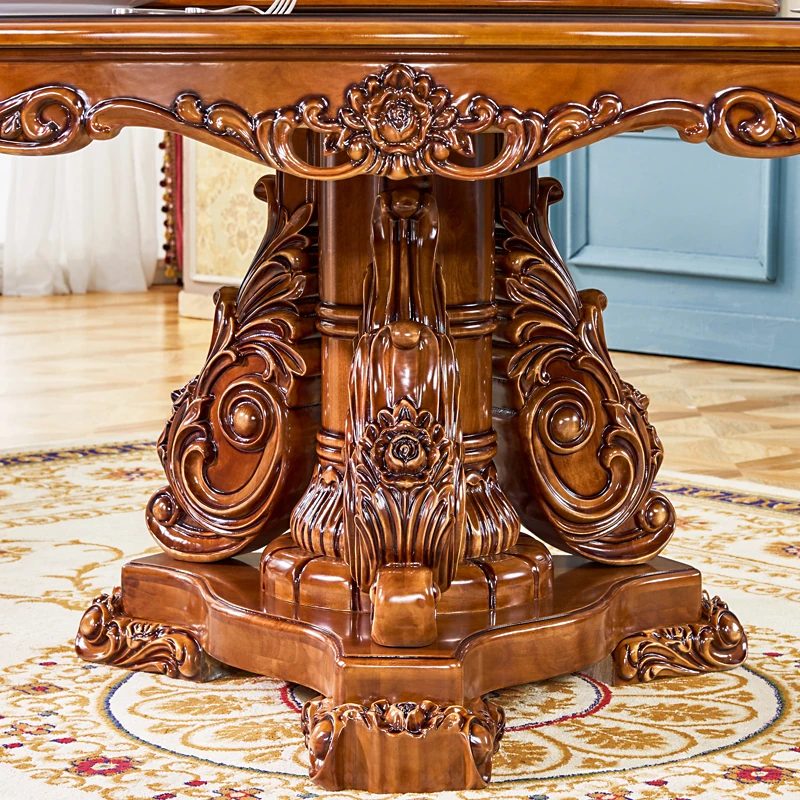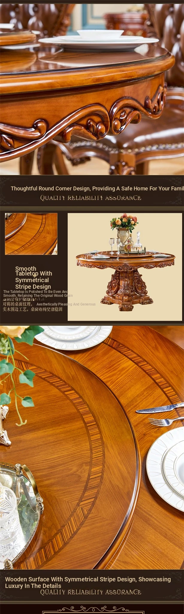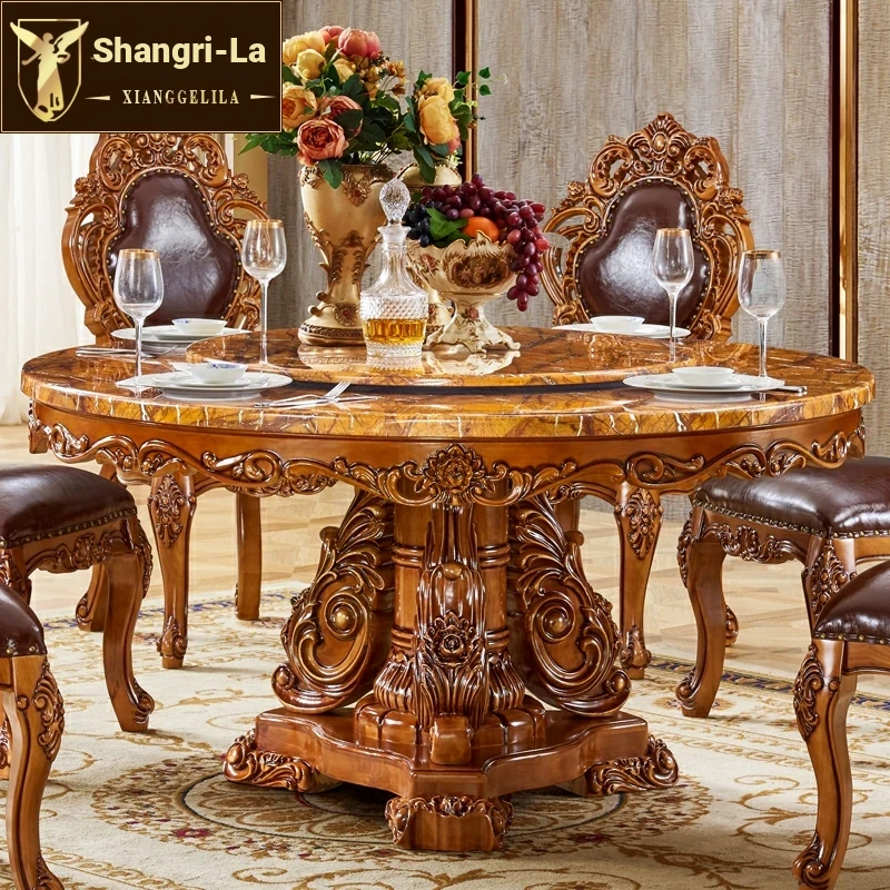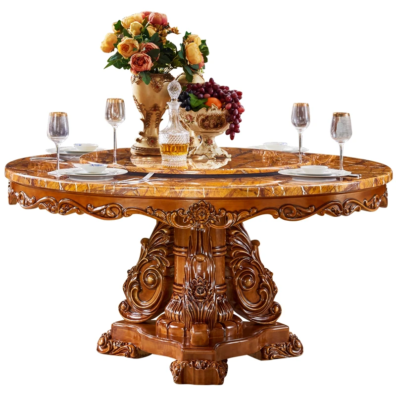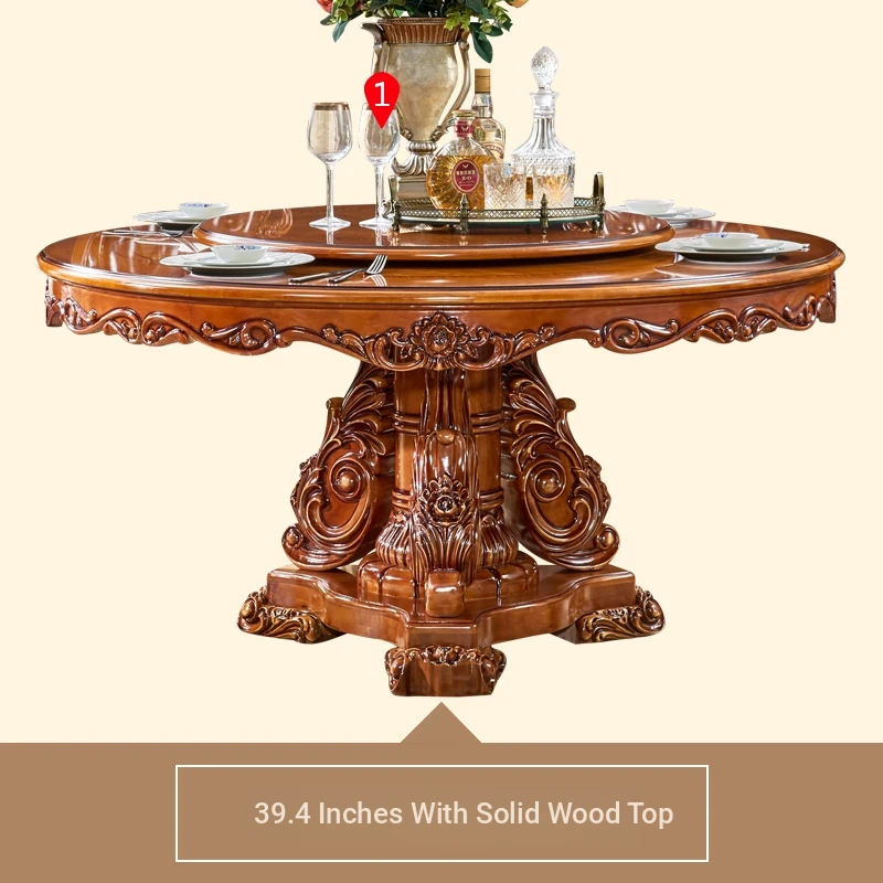 European-Style Solid Wood Round Dining Table Set - Vintage Rustic Dining Table with Lazy Susan for American Villa Homes, Perfect for Family Gatherings and Elegant Dining Experiences