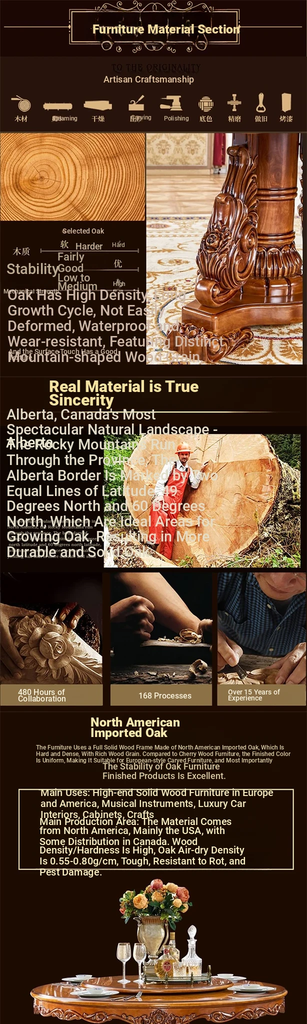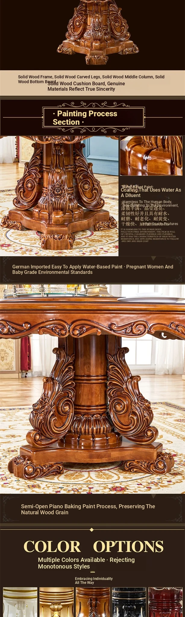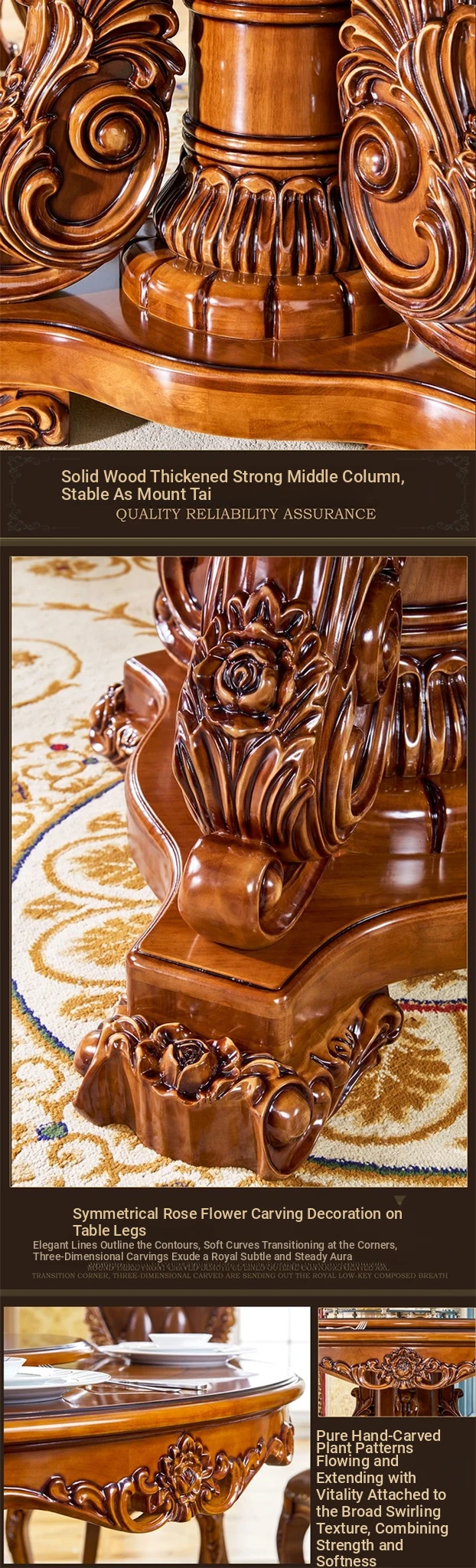 European-Style Solid Wood Round Dining Table Set - Vintage Rustic Dining Table with Lazy Susan for American Villa Homes, Perfect for Family Gatherings and Elegant Dining Experiences