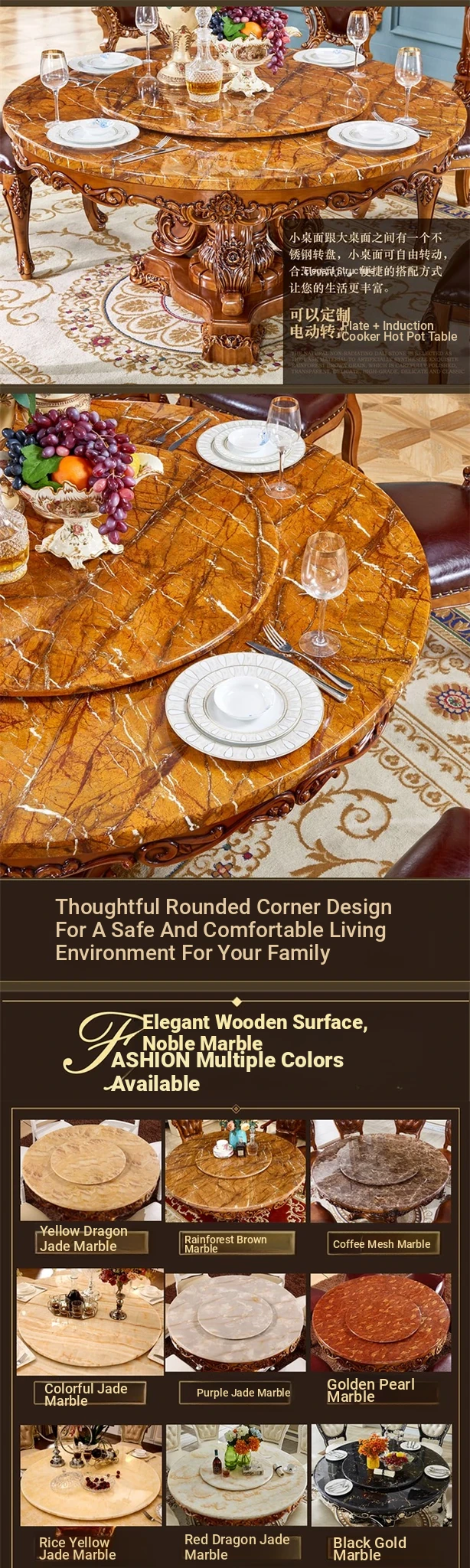 39.37 in solid wood with natural stone without turntable
